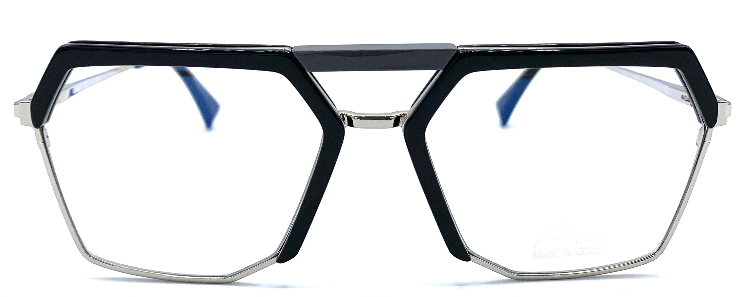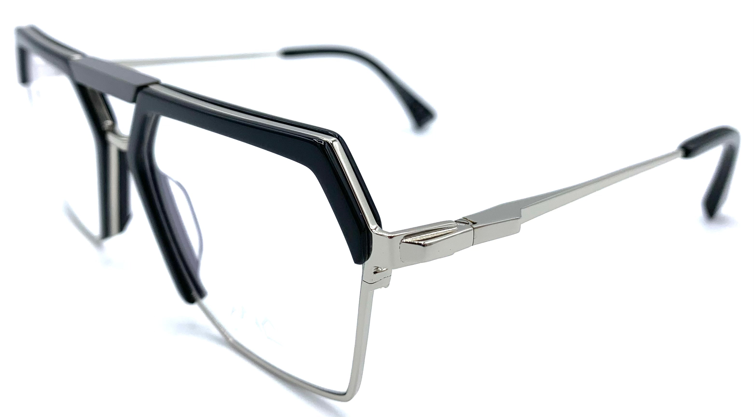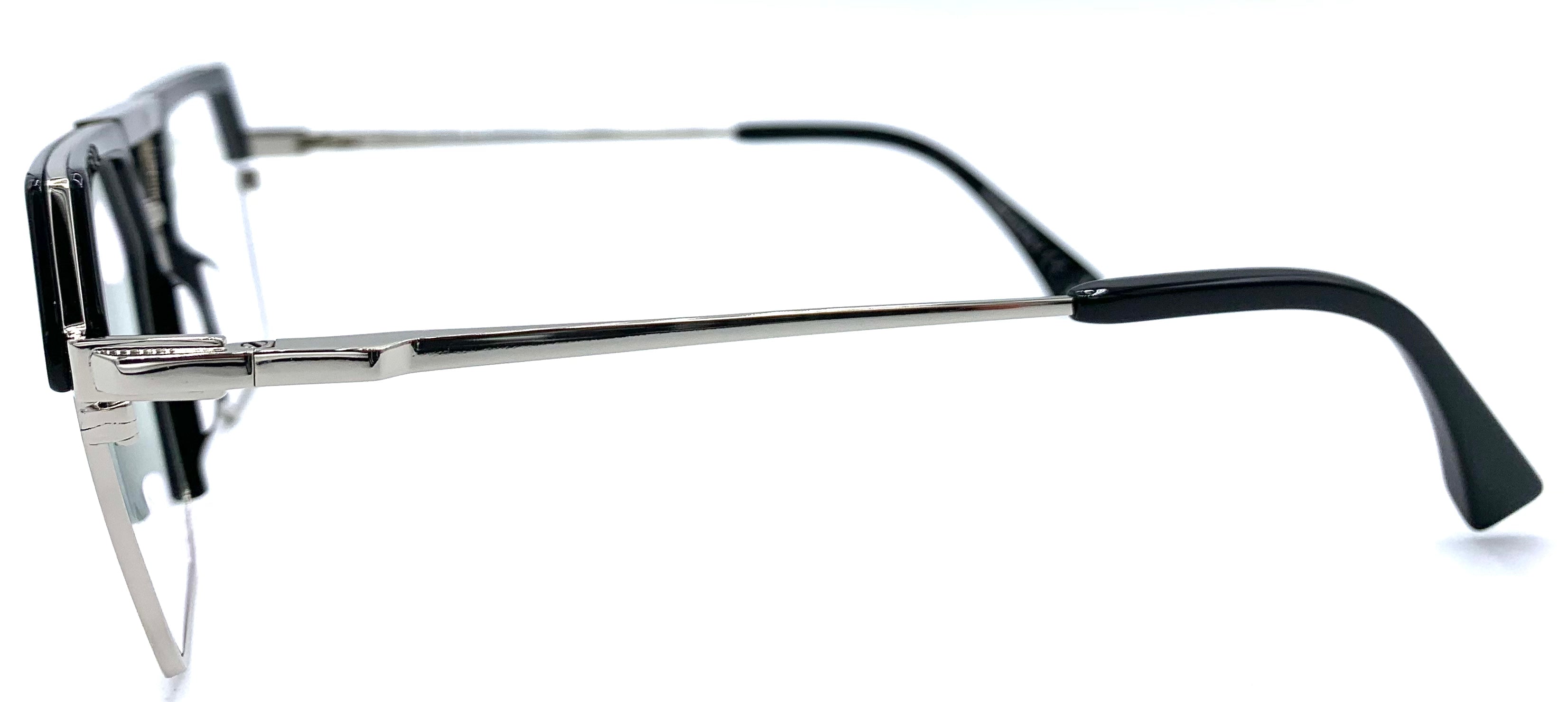 Occhiale da vista unisex combinato metallo e lastra design doppio ponte sagomato aste flex oro leggero è nero