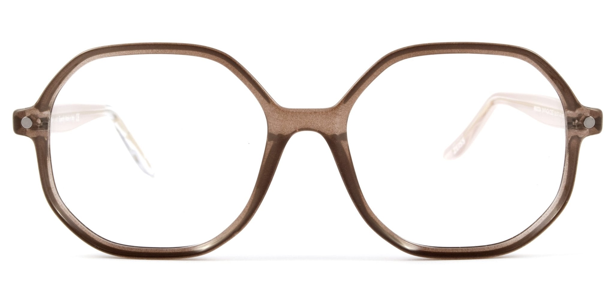 Occhiale da vista in nylon marrone chiaro con aste panna con clip Sto arrivando! Sole marrone sfumato profilato in metallo bianco