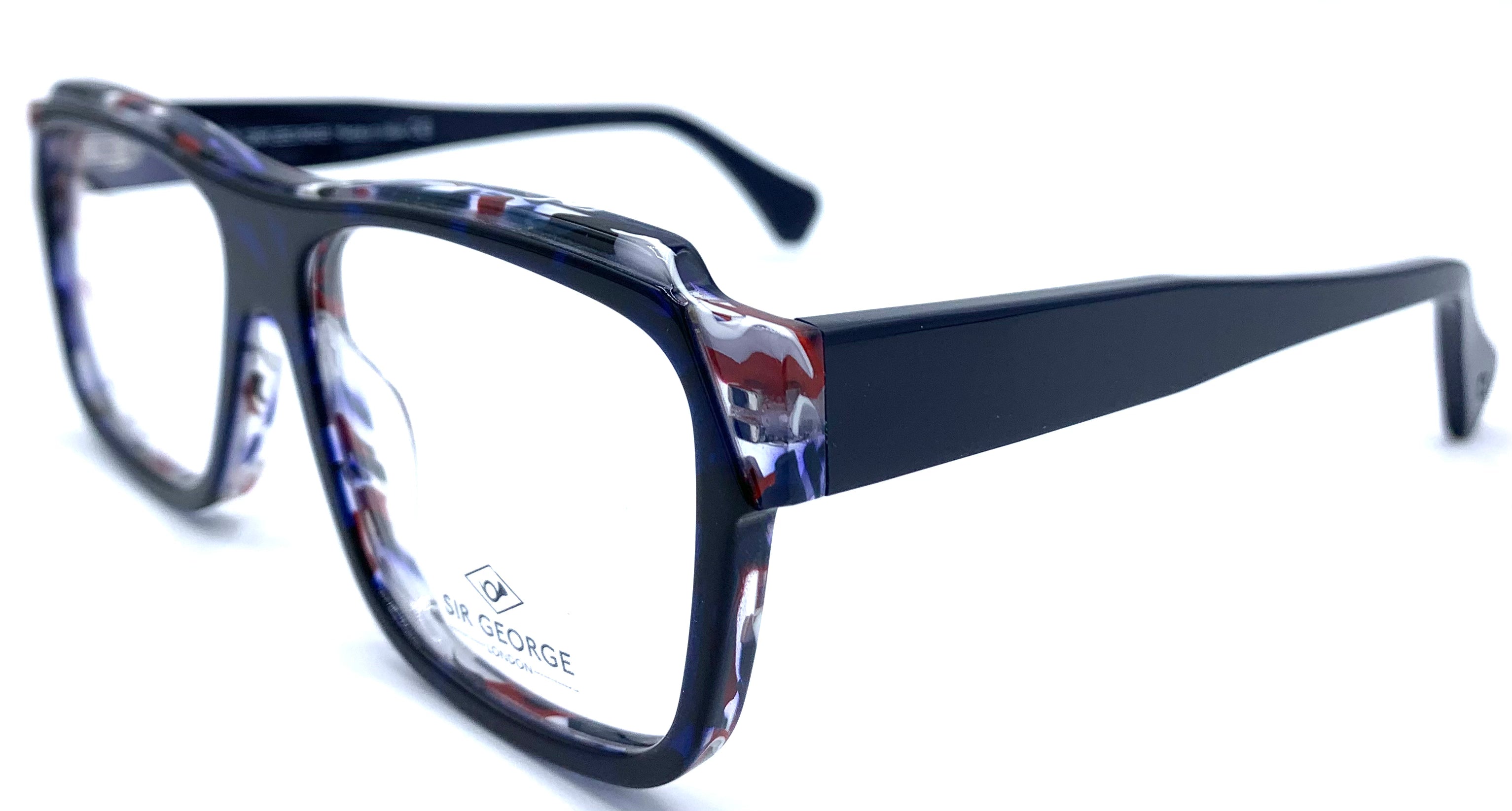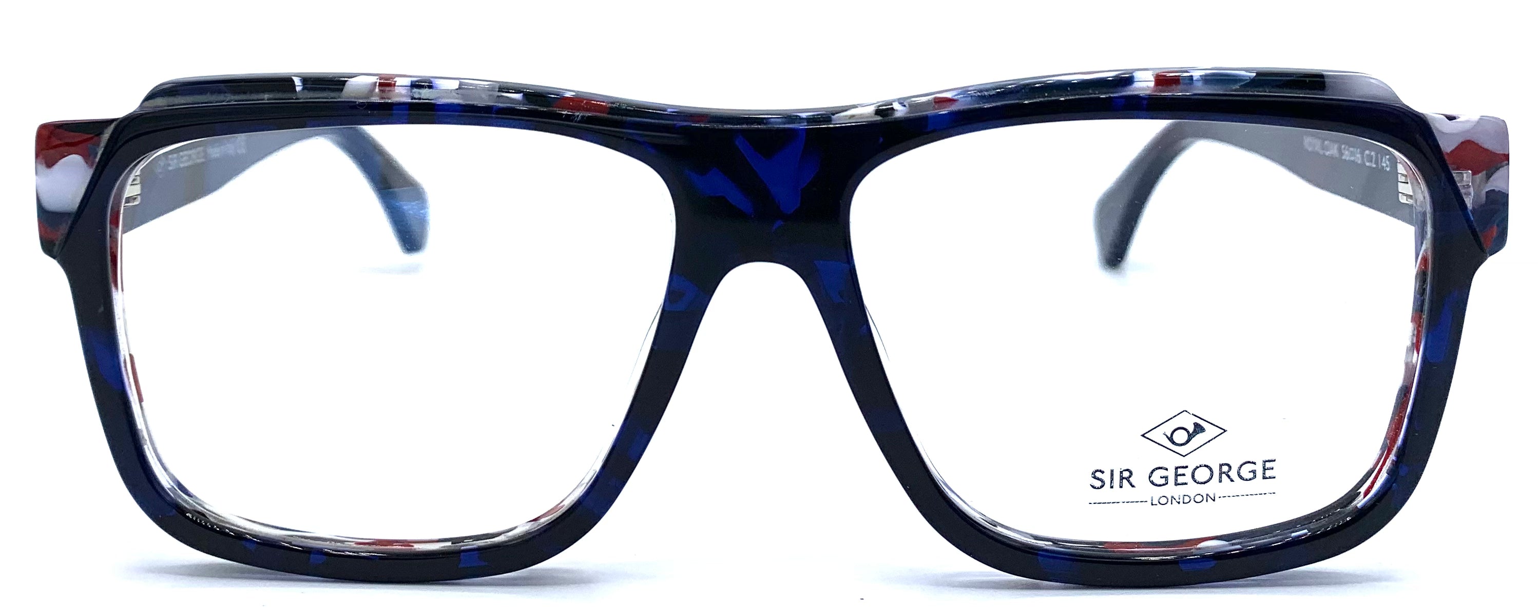 Occhiale da vista unisex in lastra blu con profilo fantasia colori cerniera affogata design classico