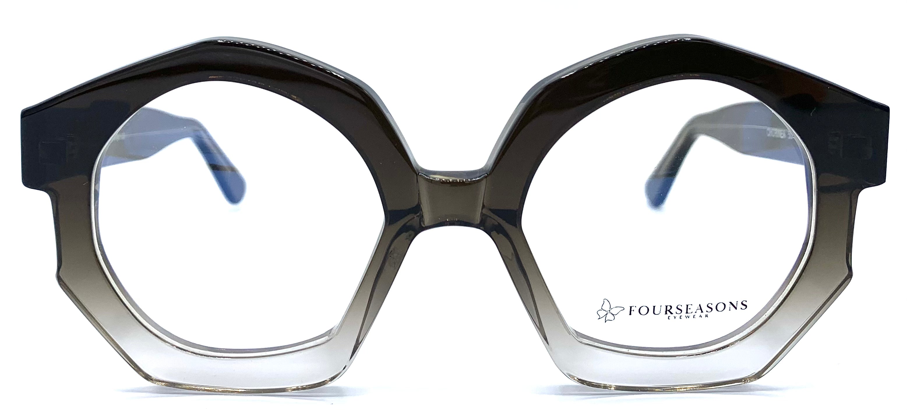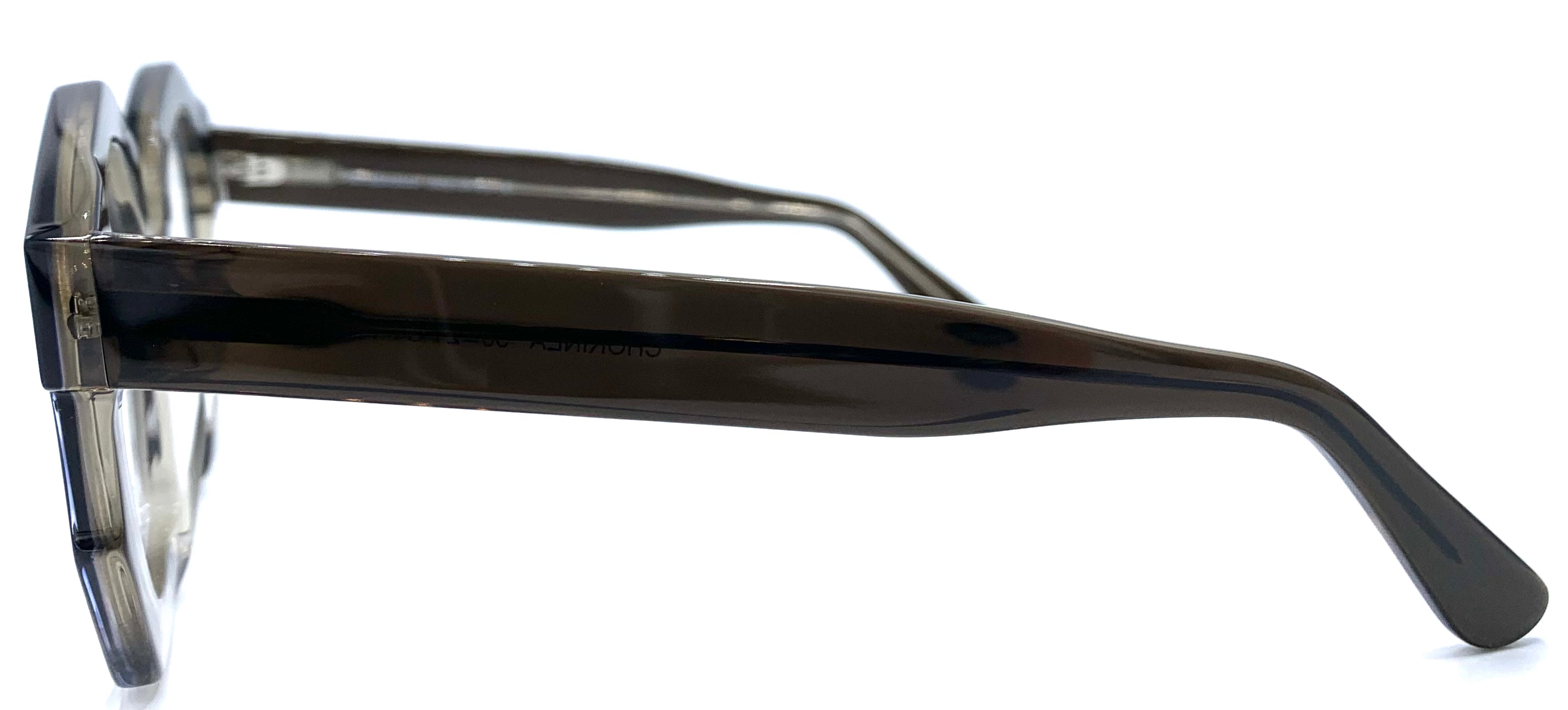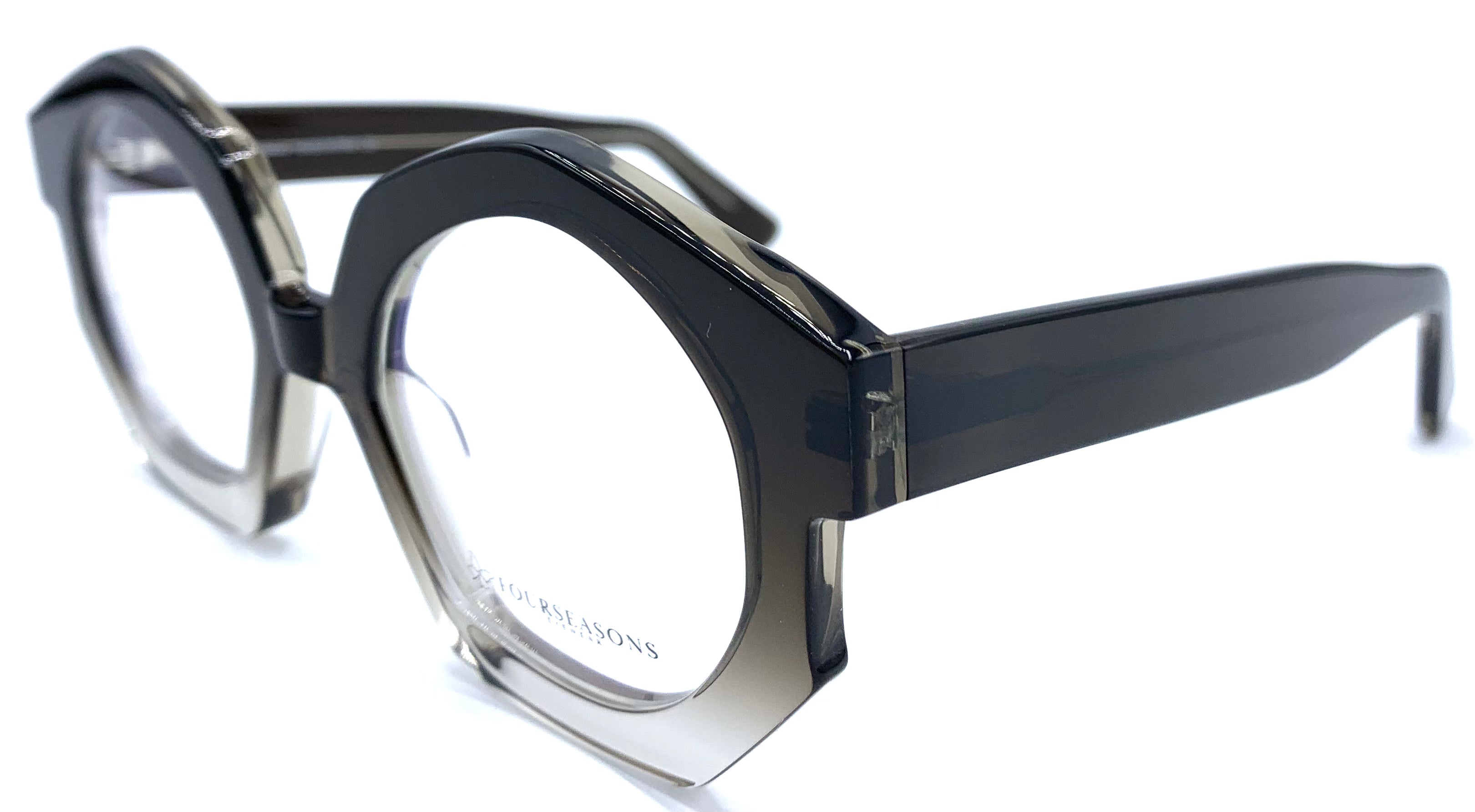 Occhiale da vista donna in lastra spessa con tonalità di grigio dal trasparente al nero cerniere affogate design stravagante unico