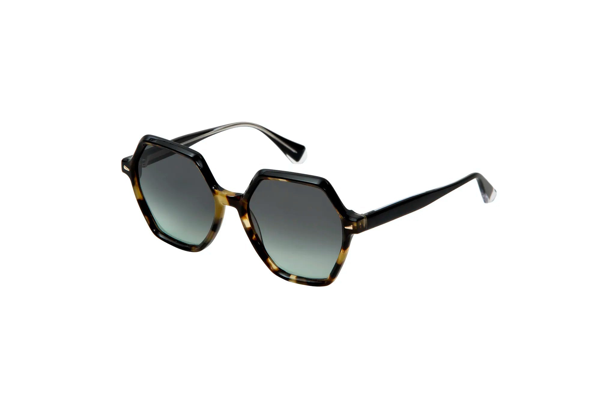Occhiale da sole donna alto e sagomato in lastra maculata marrone chiaro lenti infrangibili Grey sfumate protezione uv