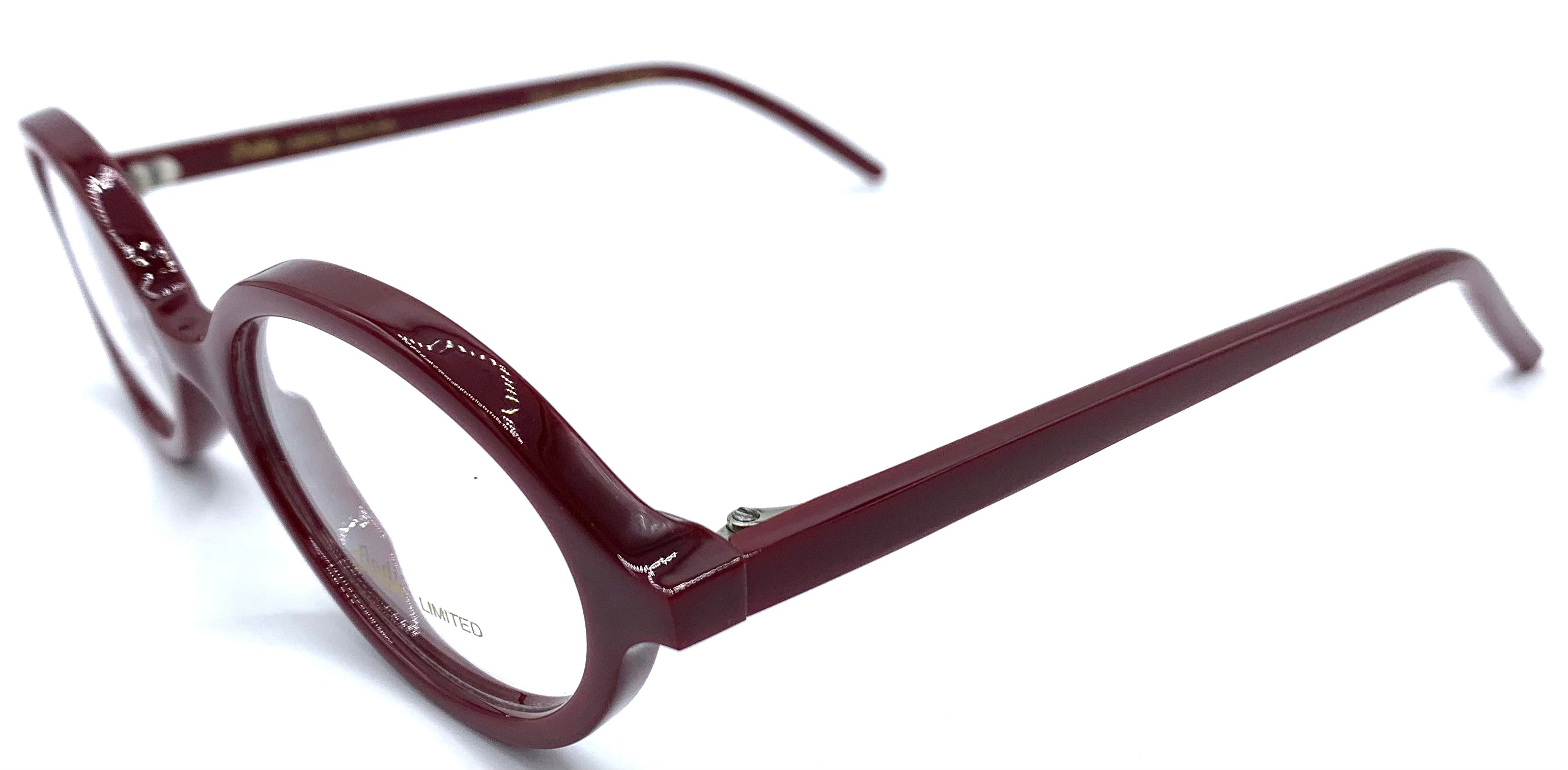 Occhiale da vista donna in lastra bordeaux lucida cerniera affogata design iconico ovale