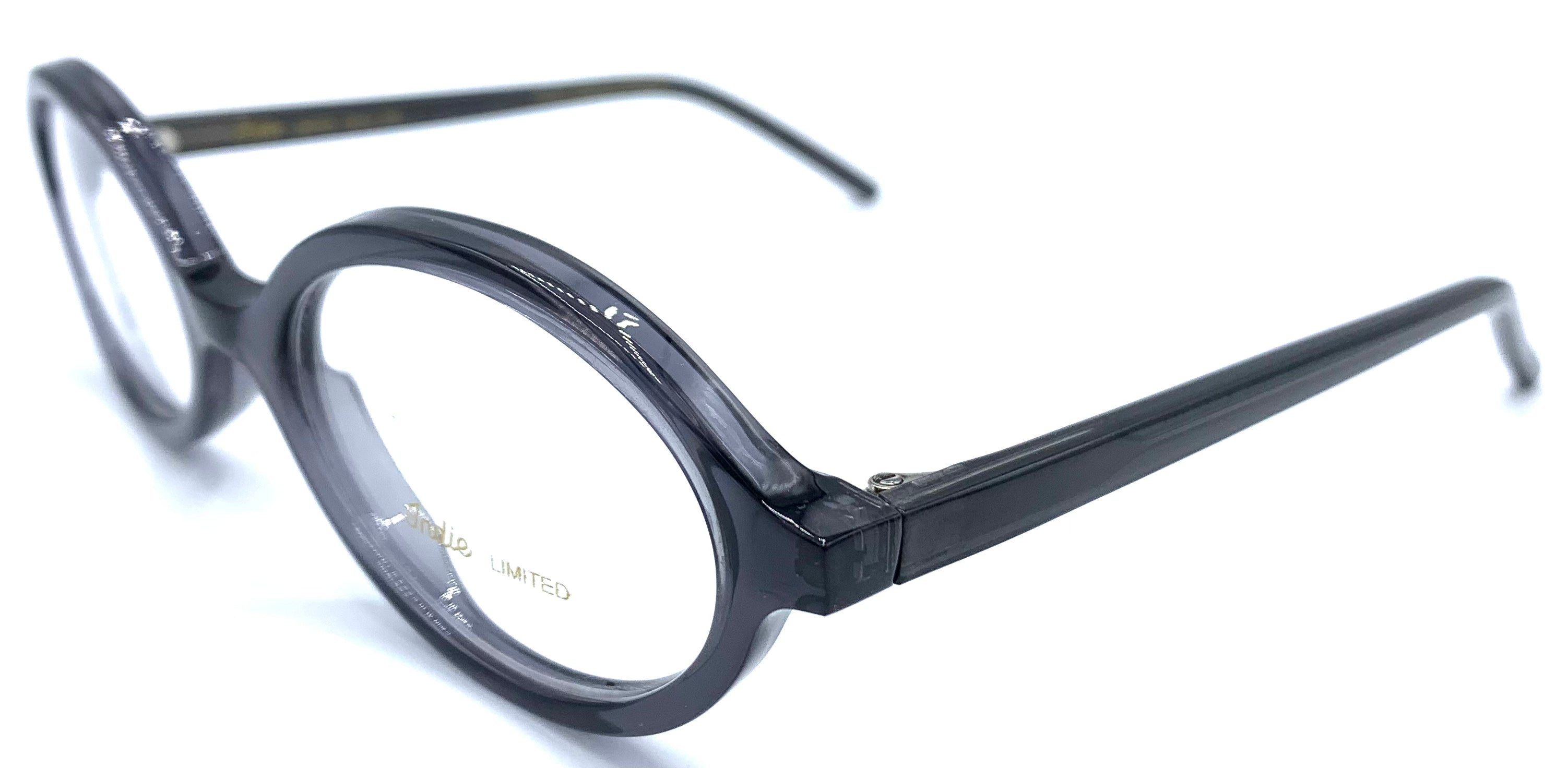 Occhiale da vista donna in lastra grigio lucida cerniera affogata design iconico ovale