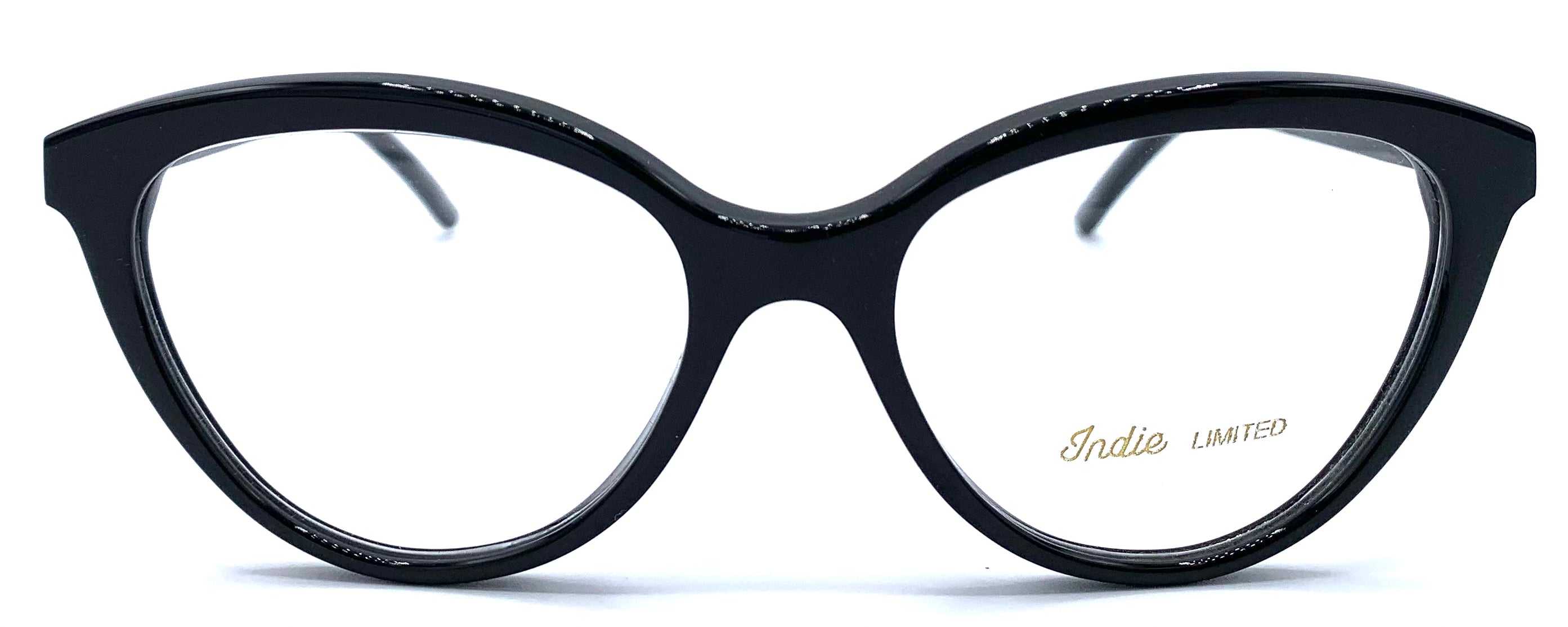 Occhiale da vista donna in lastra nera cerniere affogate design leggermente a gatto