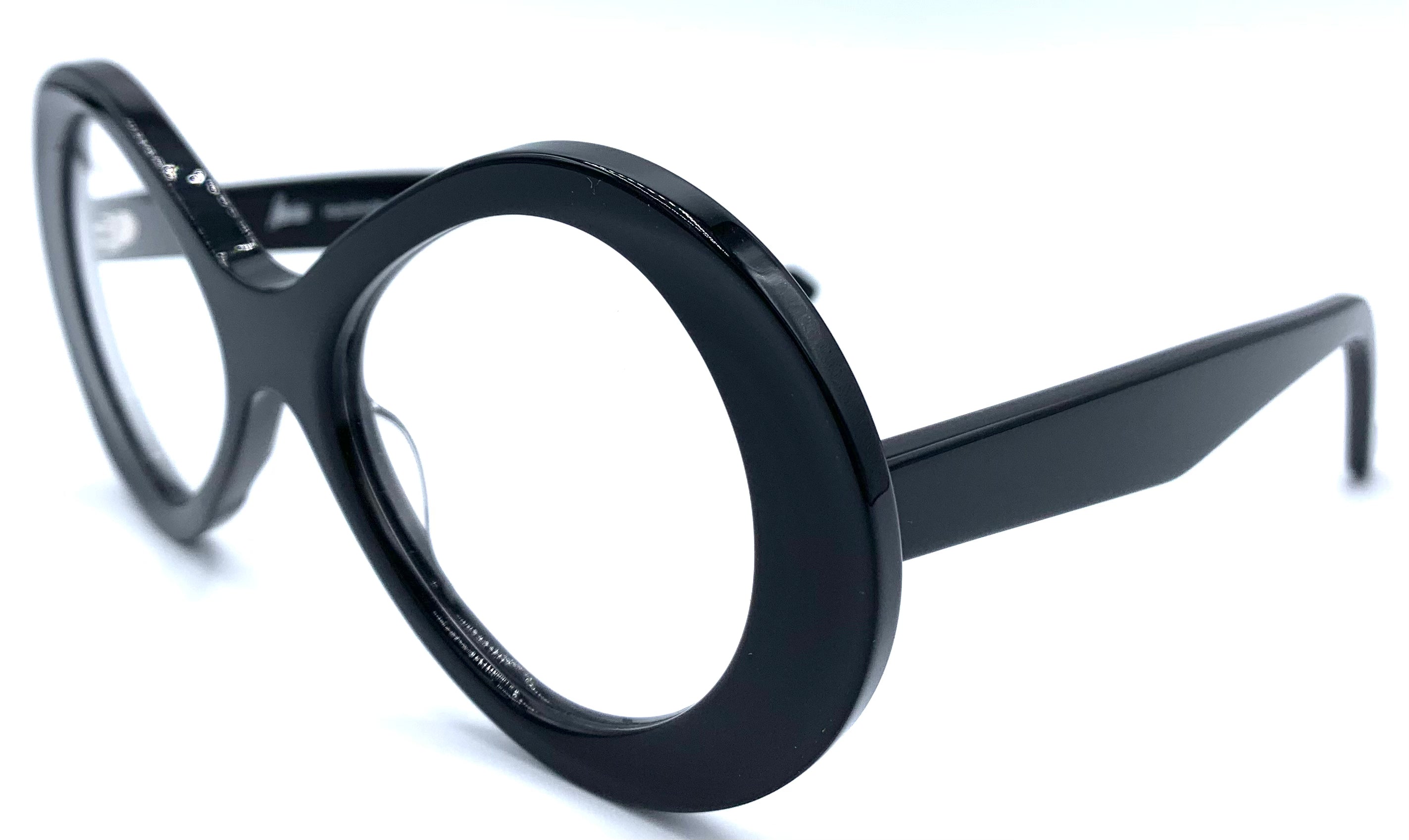 Occhiale da vista donna in lastra nera lucida cerniera affogata design unico