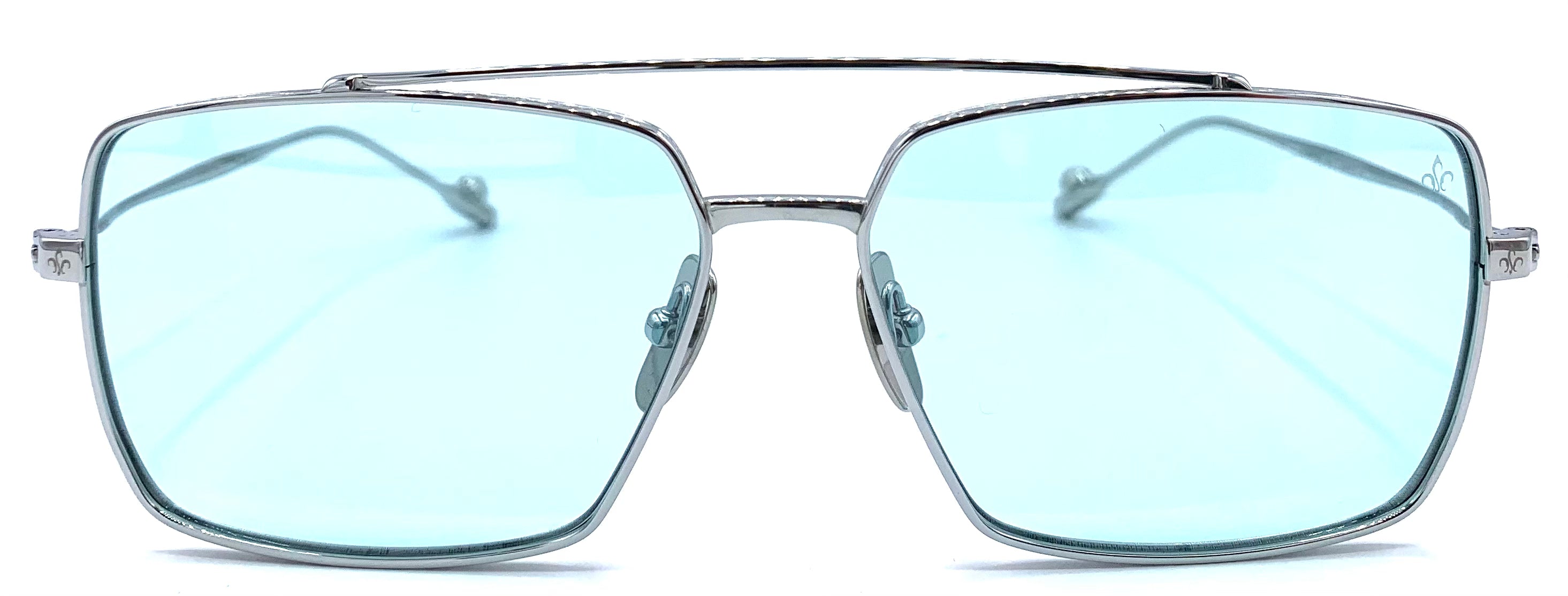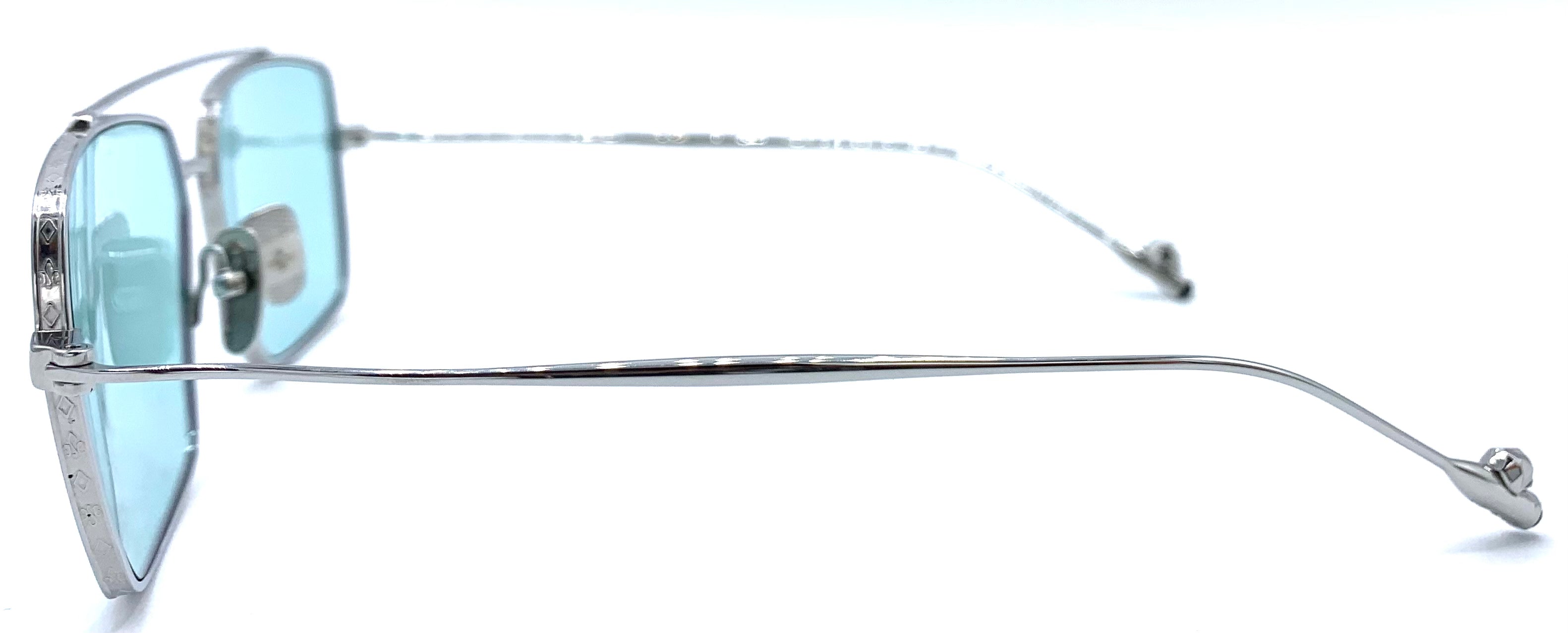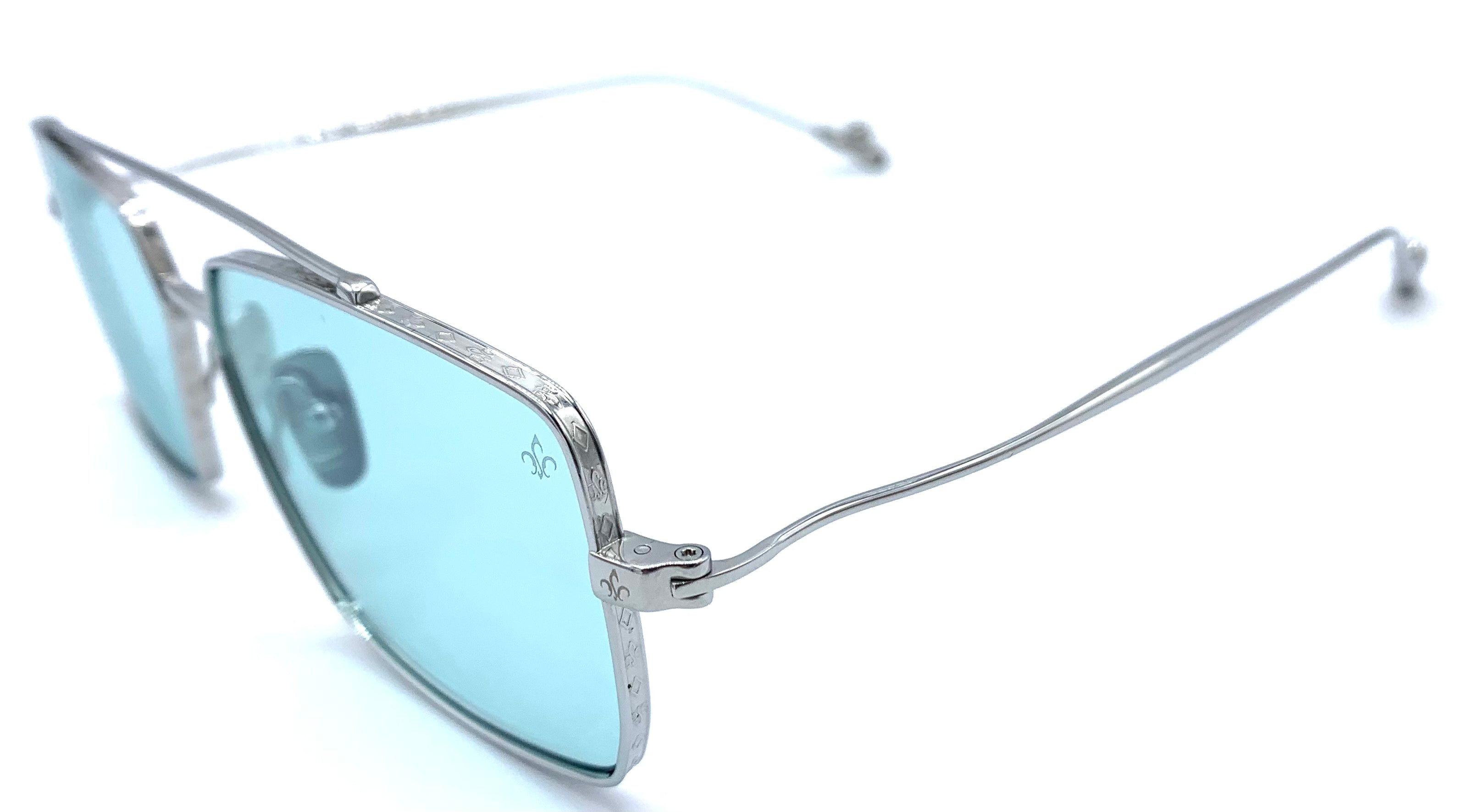 Occhiale da sole unisex un capolavoro di artigianato Giapponese in titanio argento lenti protezione uv cobalto blu design sagomato rettangolare