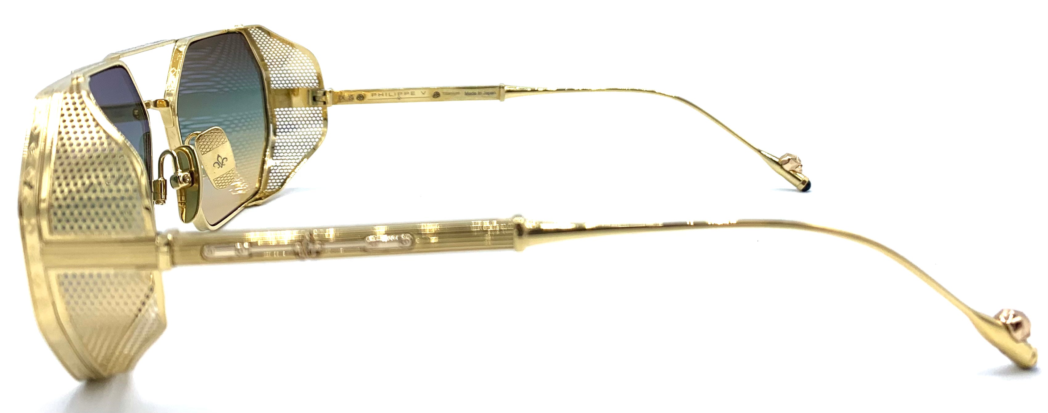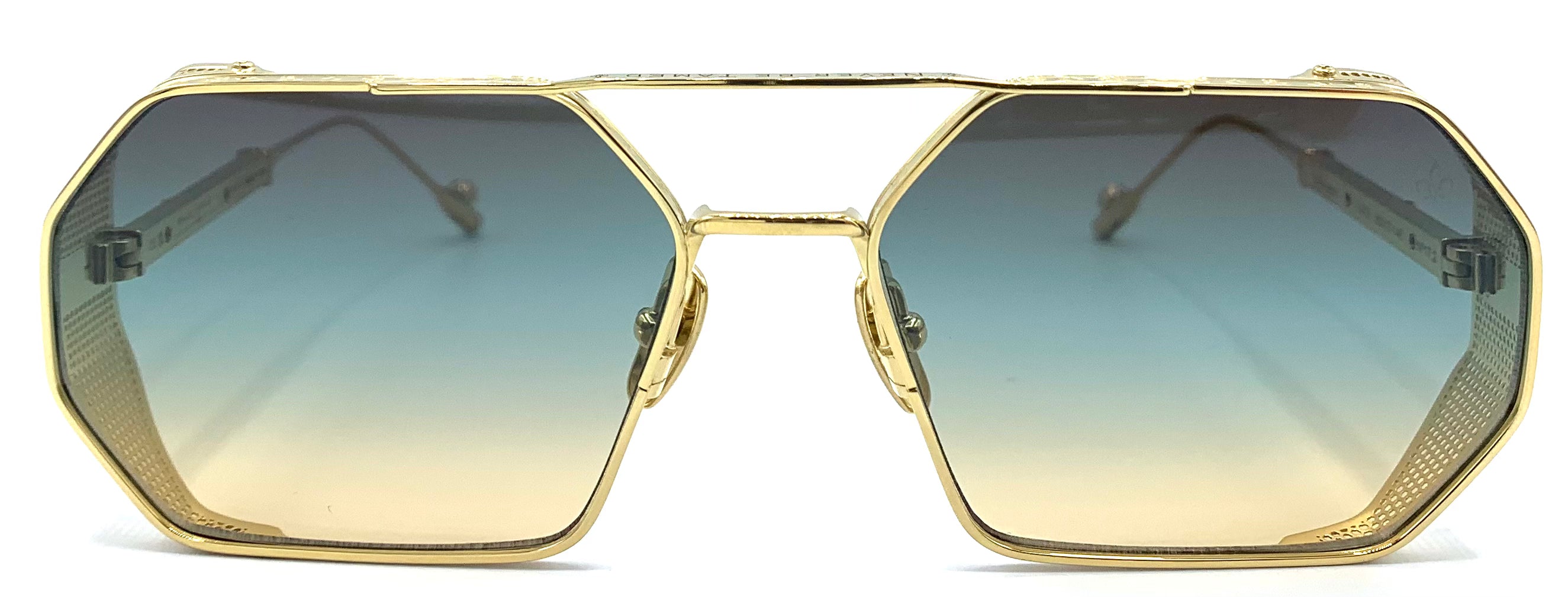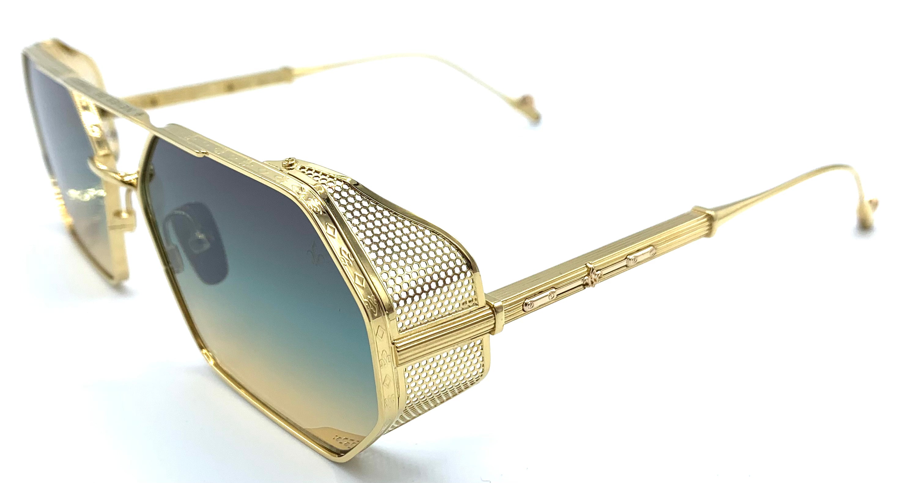 Occhiale da sole unisex un capolavoro di artigianato Giapponese in titanio oro lenti protezione uv sfumate grey design sagomato rettangolare