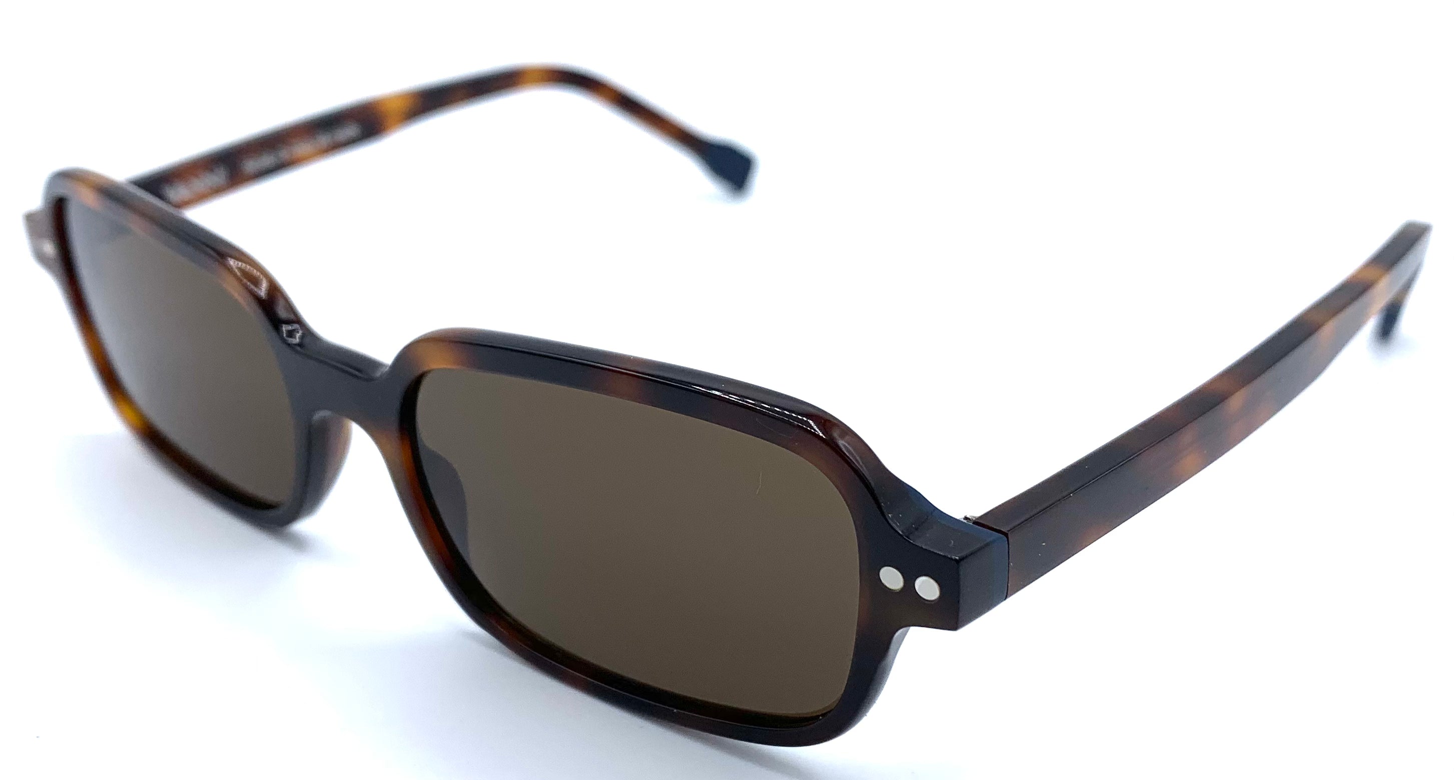 Occhiale da sole unisex iconico in lastra avana lenti infrangibili marroni protezione uv design rettangolare