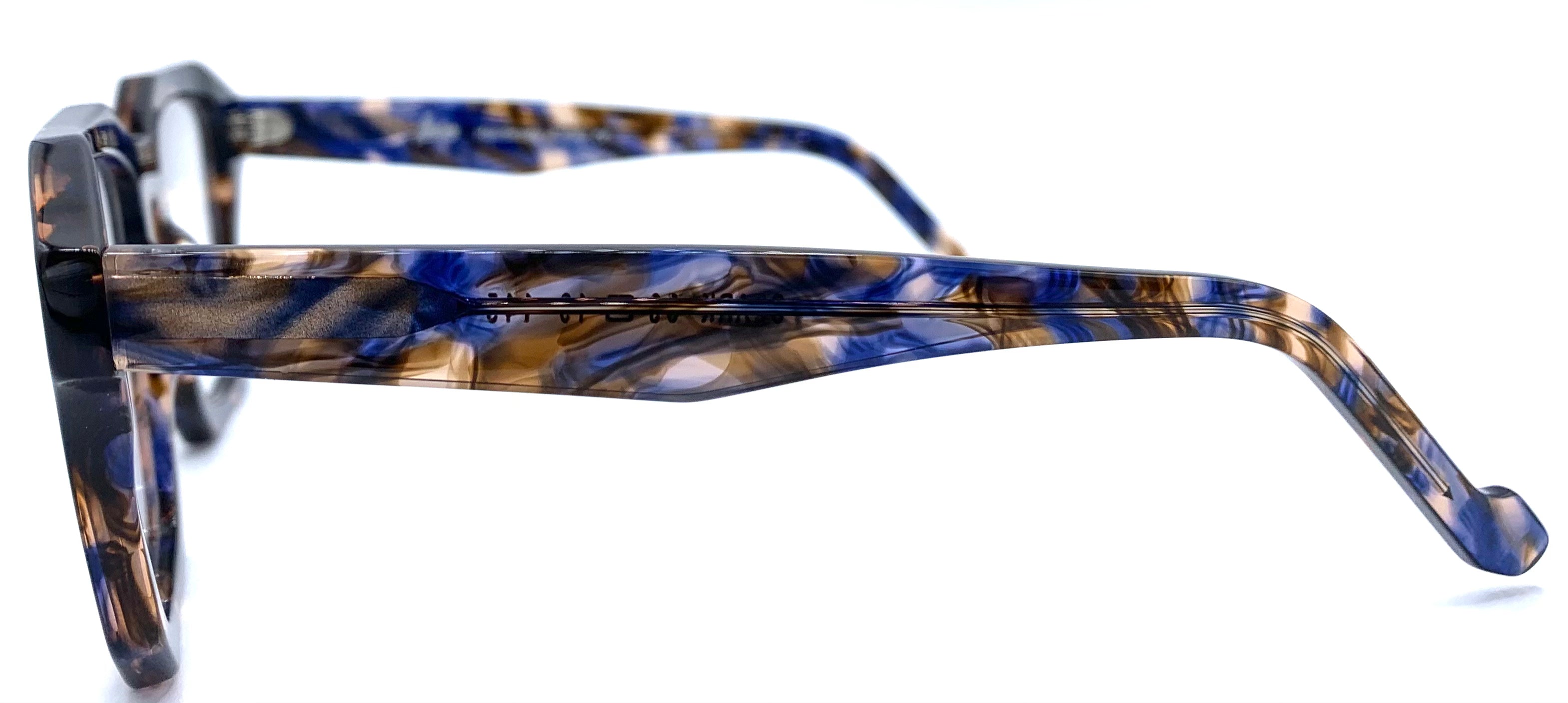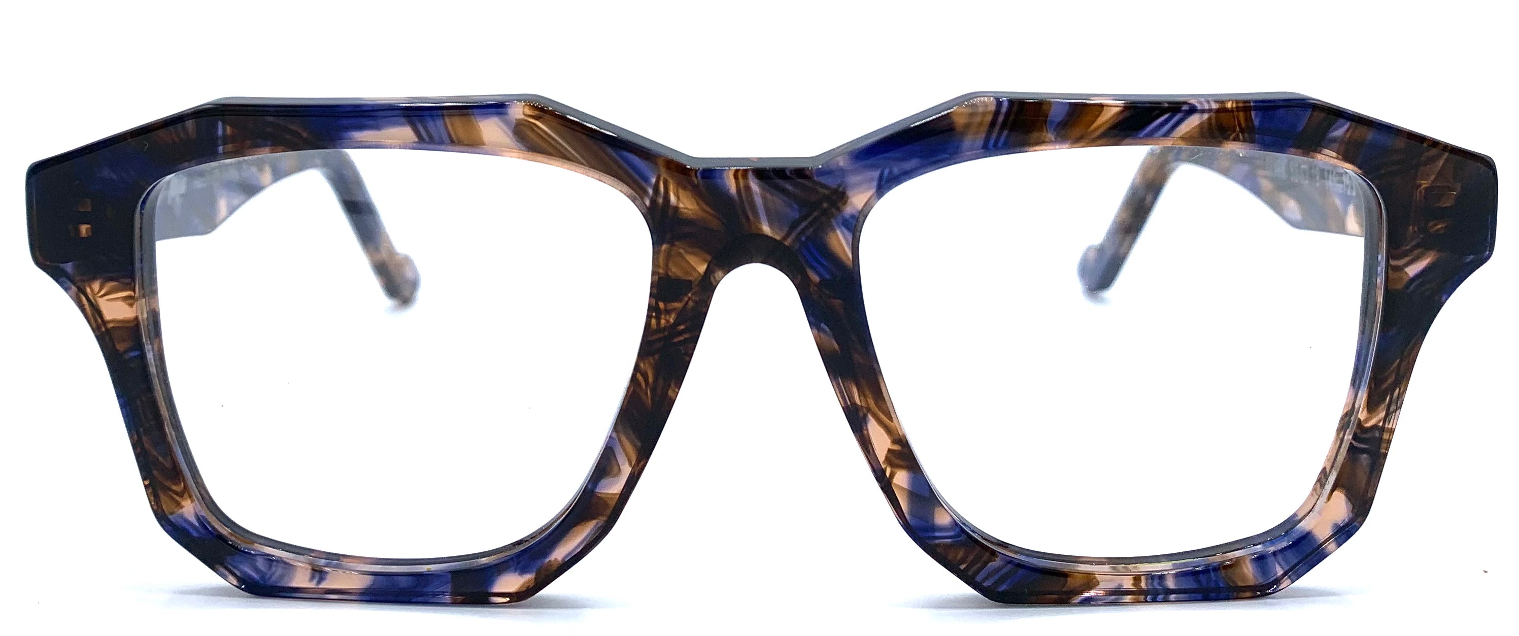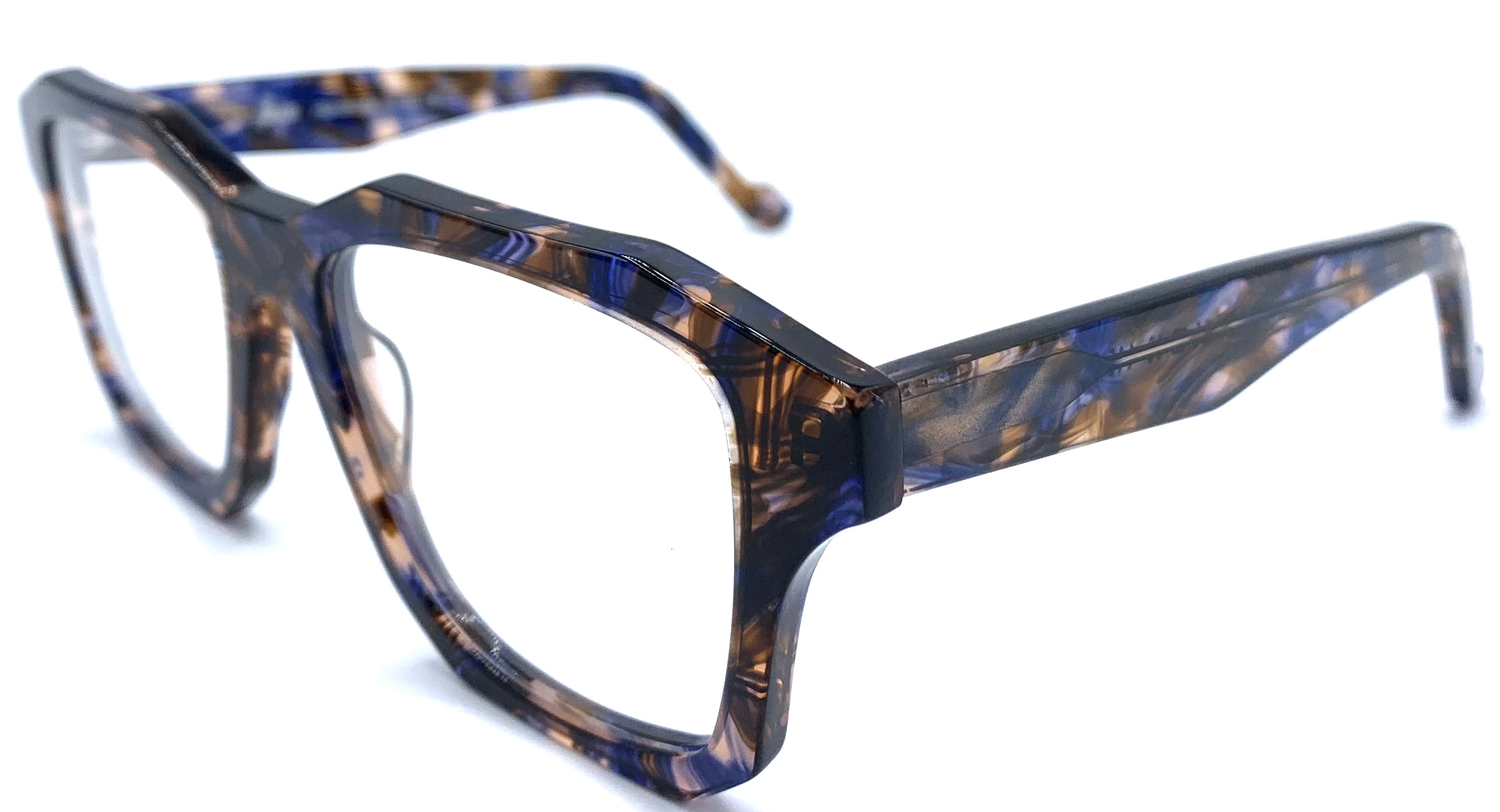 Occhiale da vista unisex in lastra avana viola striata cerniera affogata design estroso sagomato