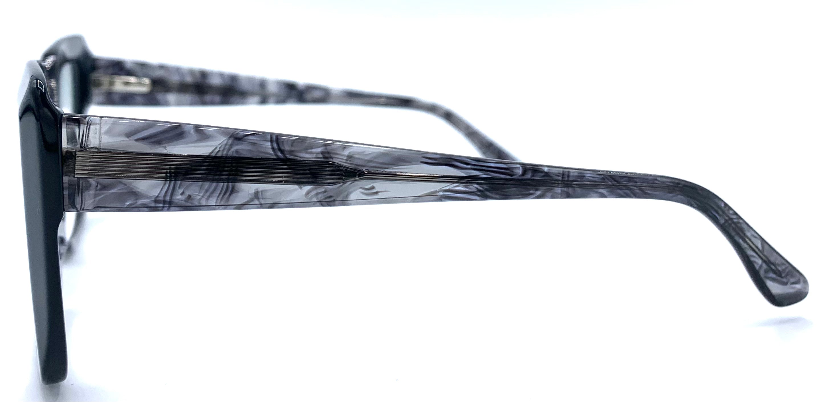 Occhiale da vista donna in lastra nera trasparente cerniera asta flex design tondo squadrato grande