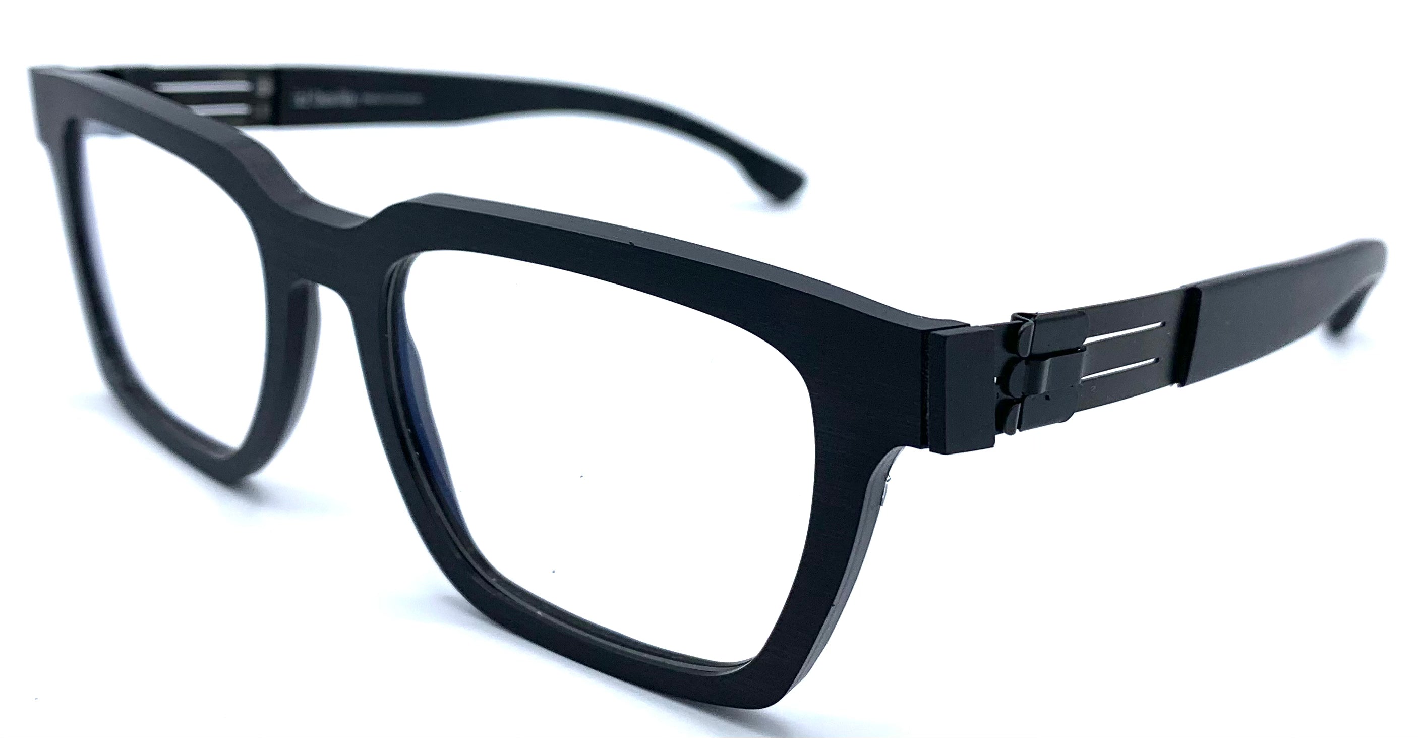 Occhiale da vista unisex in lastra nera opaca  spessa ma leggerissimo design rettangolare cerniera a fibbia aste in acciaio