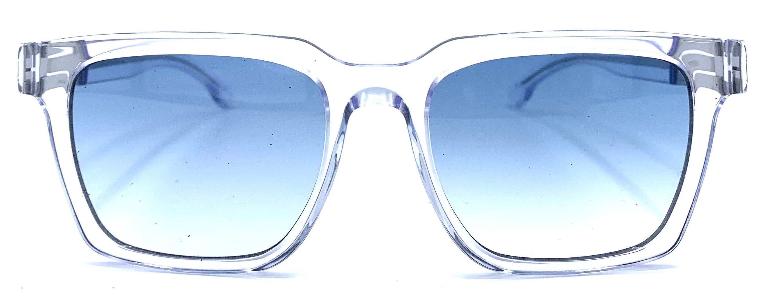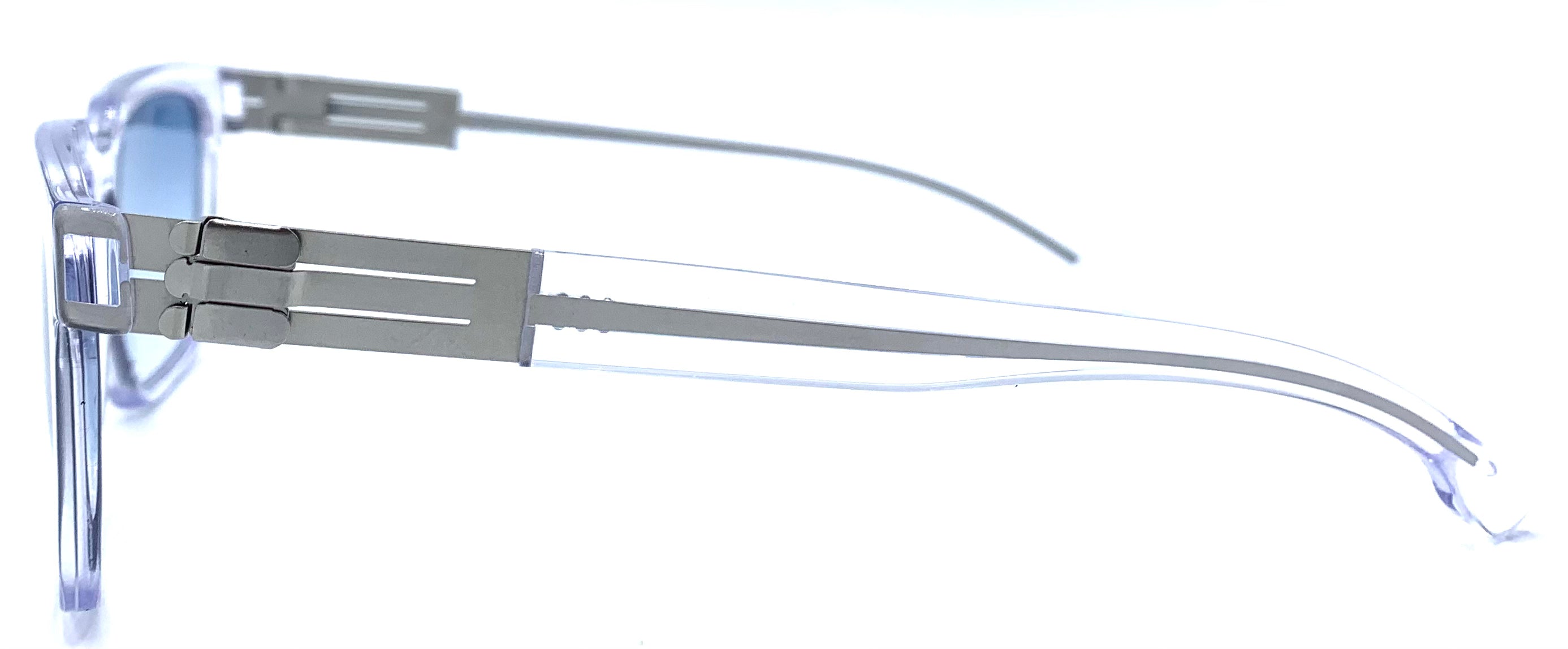 Occhiale da vista e sole unisex in lastra trasparente spessa ma leggerissimo design rettangolare cerniera a fibbia aste in acciaio lenti infrangibili cobalto protezione uv