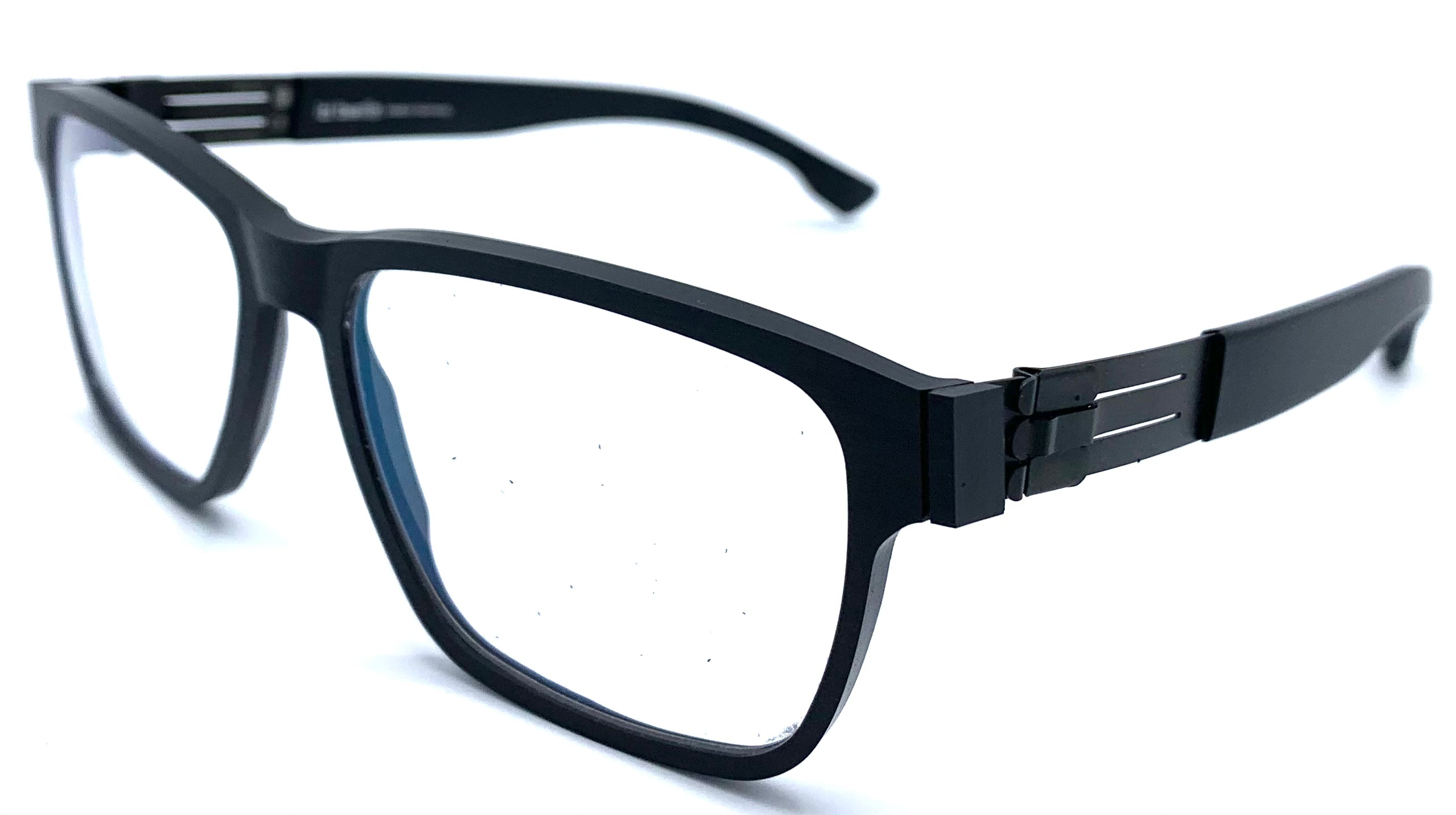 Occhiale da vista unisex in lastra spessa nera opaco ma comunque leggerissimo cerniera con fibbie design rettangolare