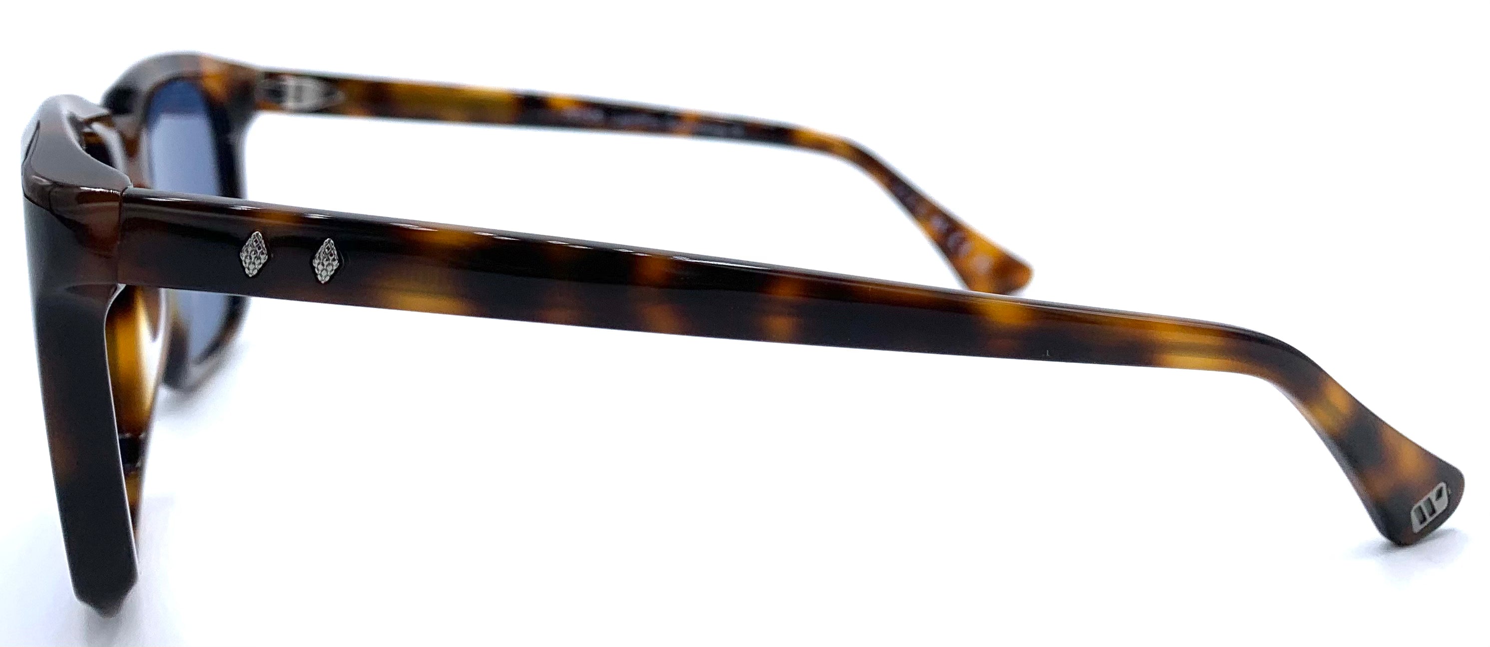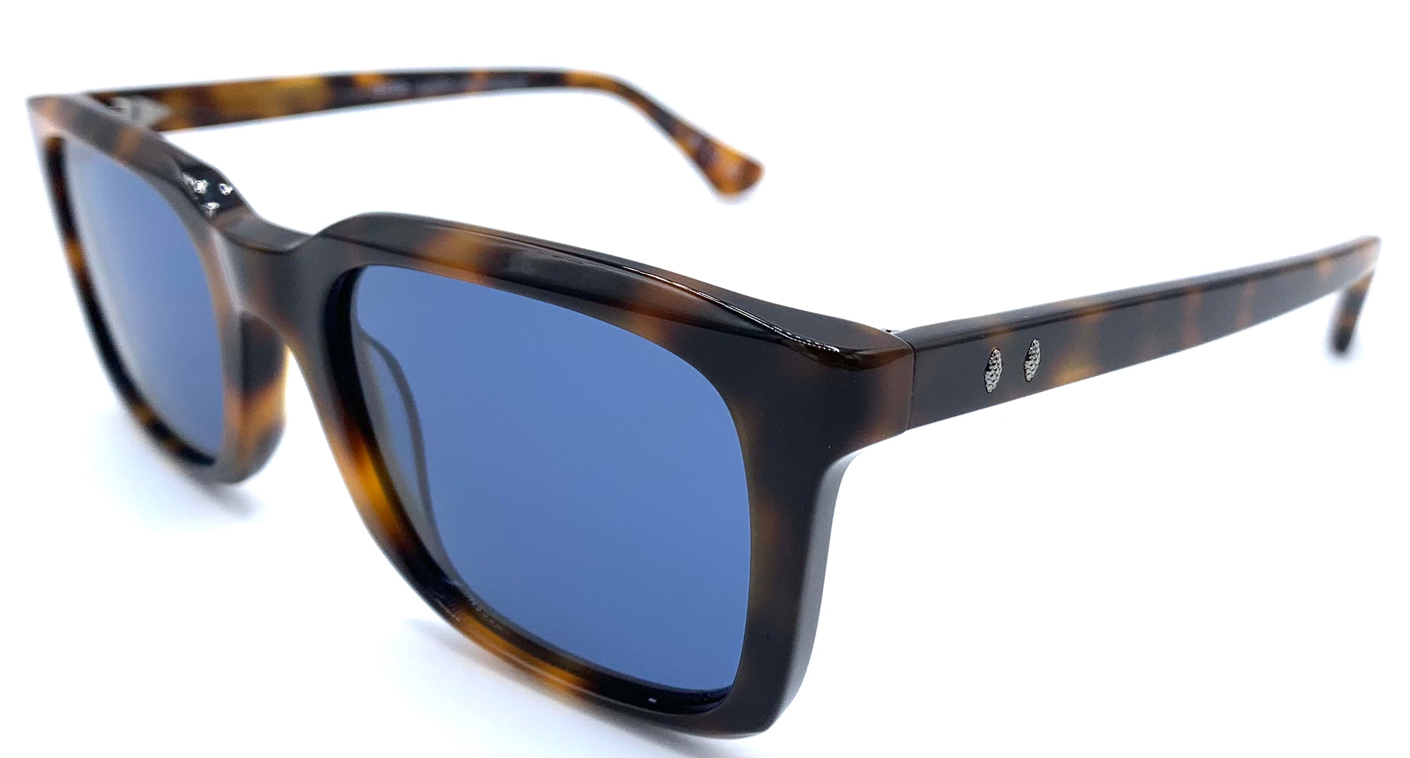 Occhiale da sole unisex in lastra avana maculato cerniera affogata lenti blu grigio polarizzato protezione uv