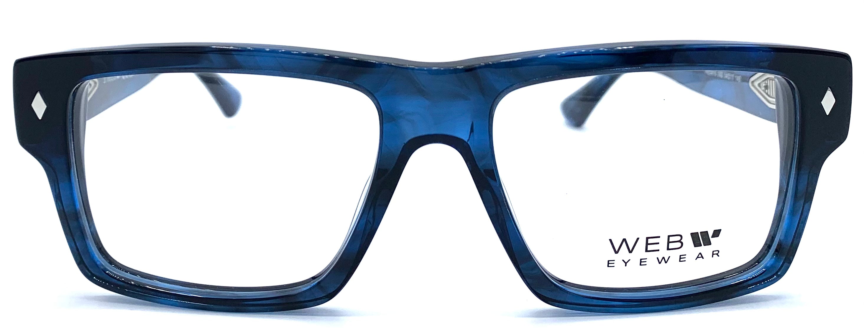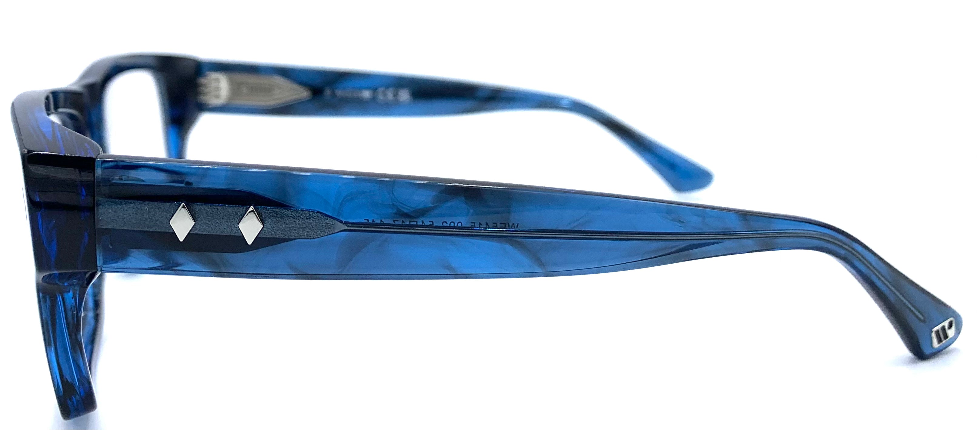 Occhiale da vista uomo in lastra blu  striato rettangolare cerniera affogata asta larga