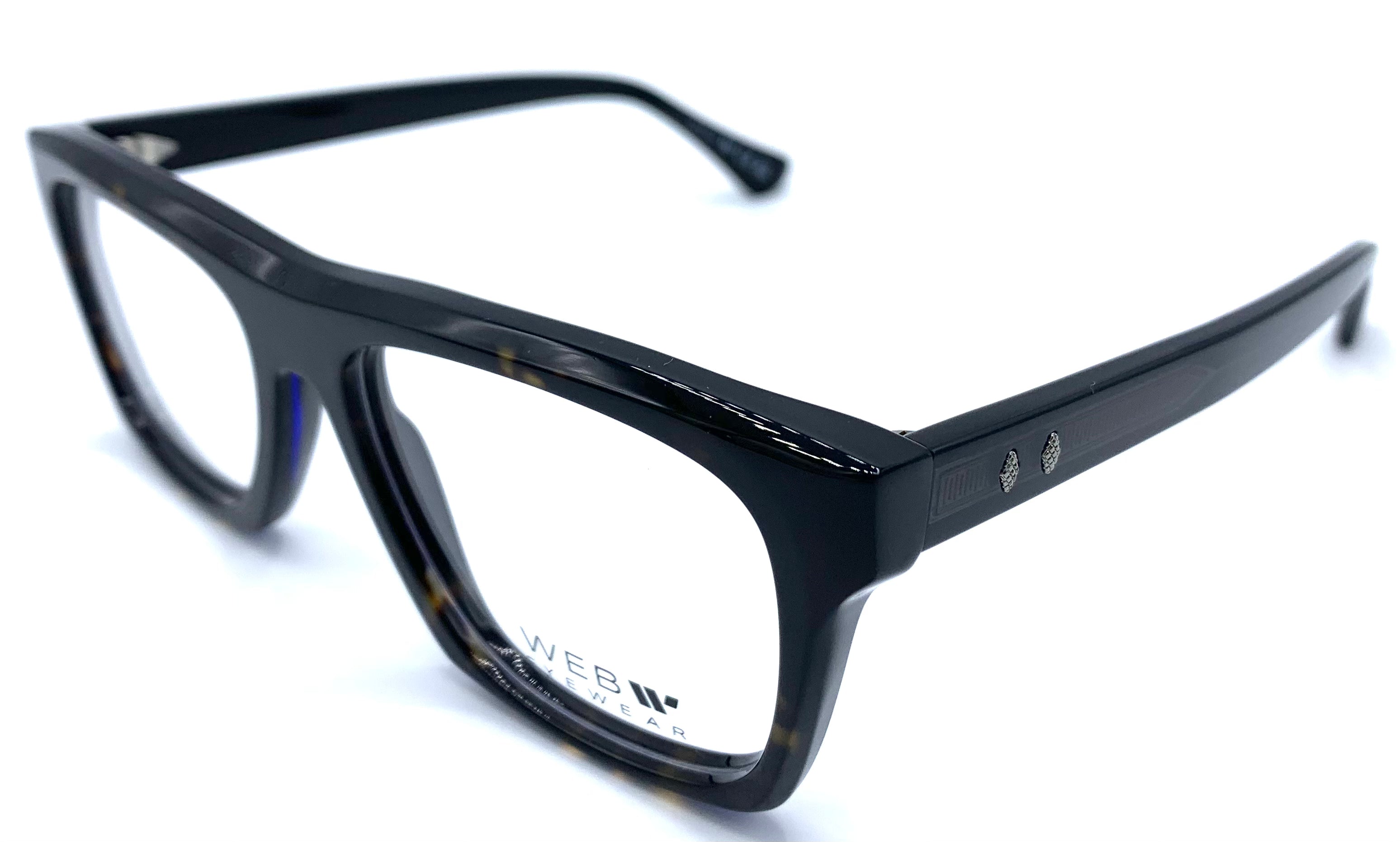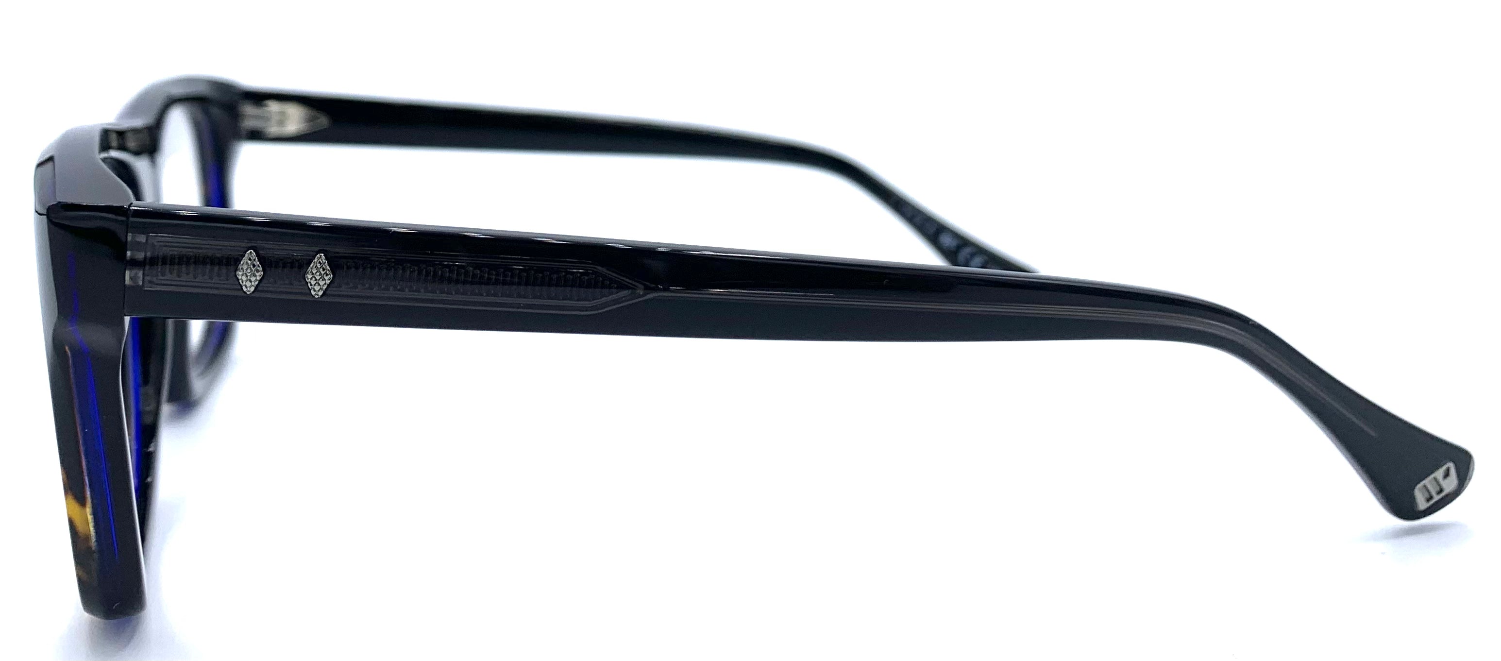 Occhiale da vista unisex in lastra avana con riflessi blu cerniera affogata design rettangolare