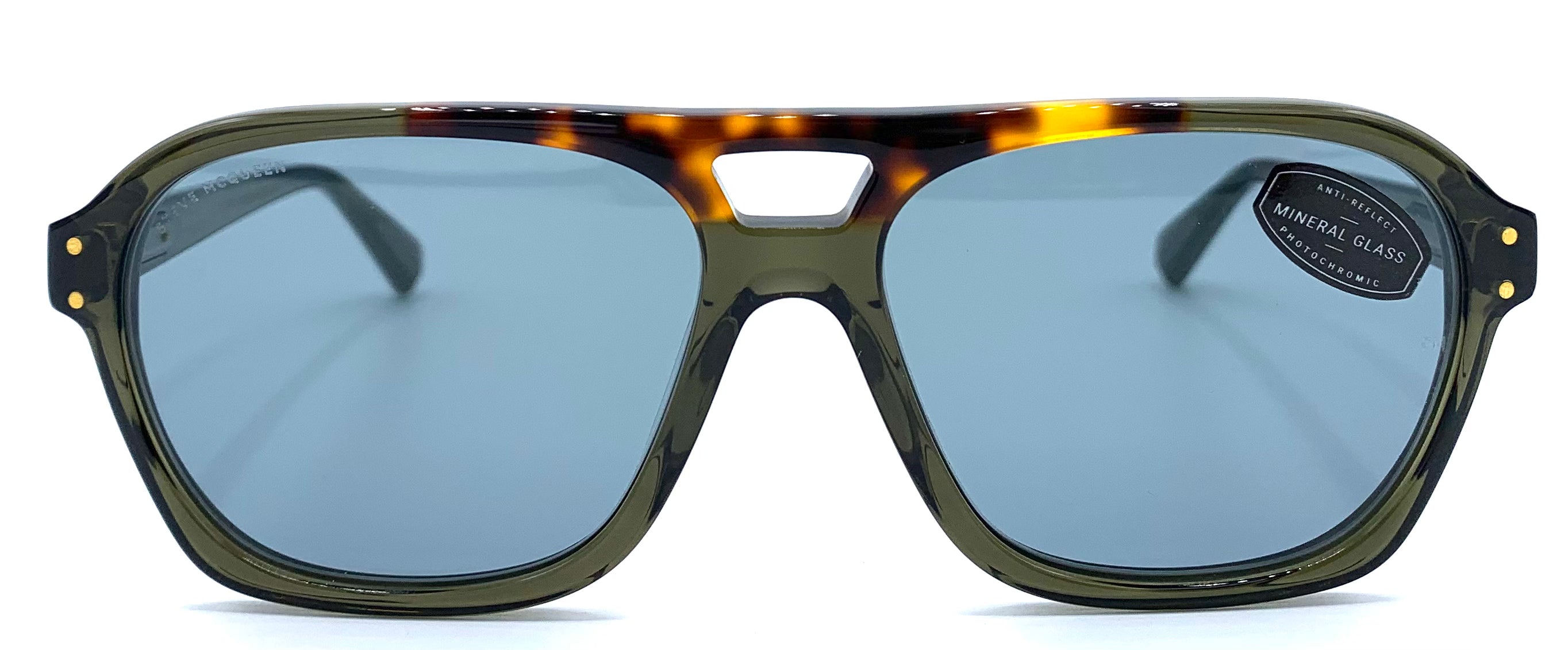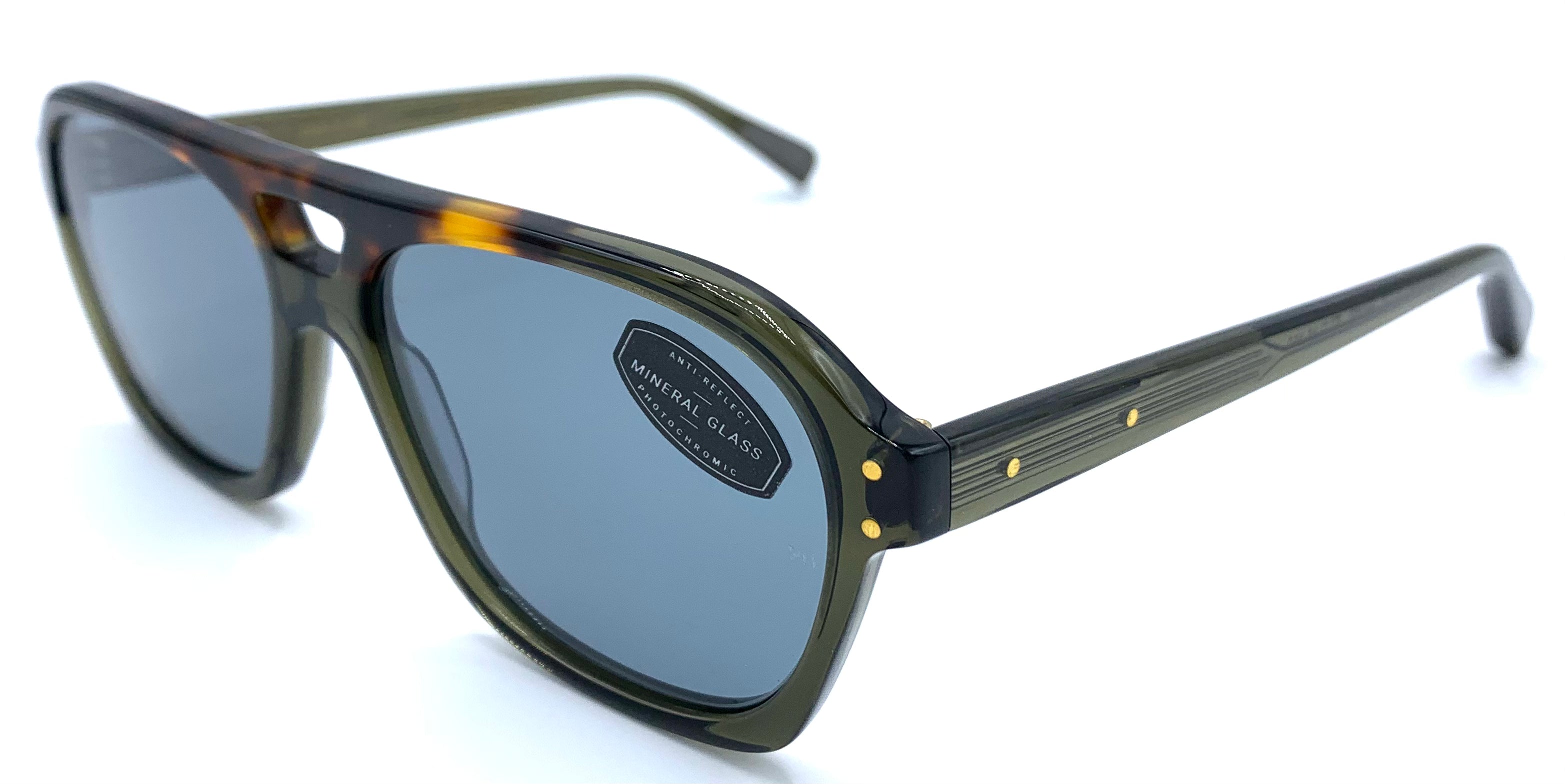 Occhiale da sole unisex in lastra grigio verde avana design storico doppio ponte lenti in cristallo Barberini antiriflesso fotocromatiche grey protezione uv