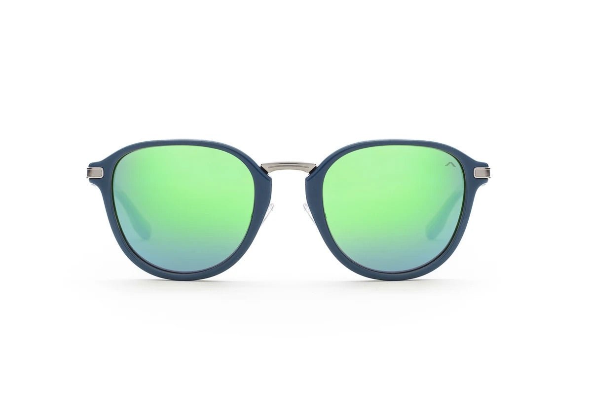 Occhiale da sole unisex in lastra grigio lucido con profili sfumato lenti policarbonato polarizzato specchio verde protezione uv