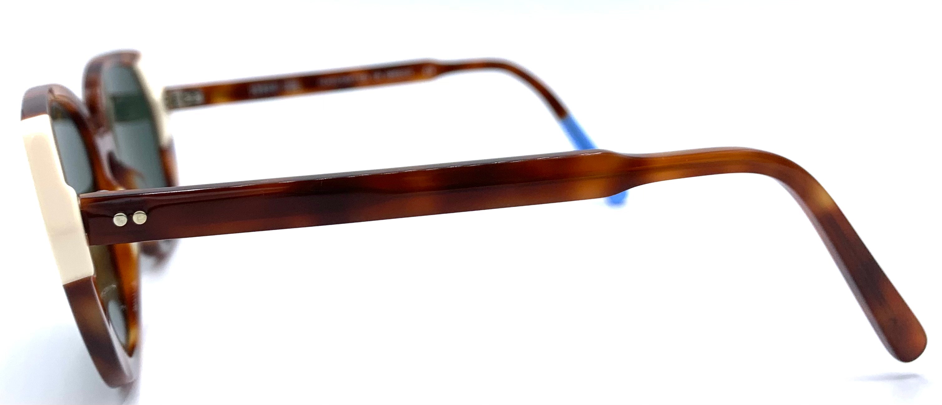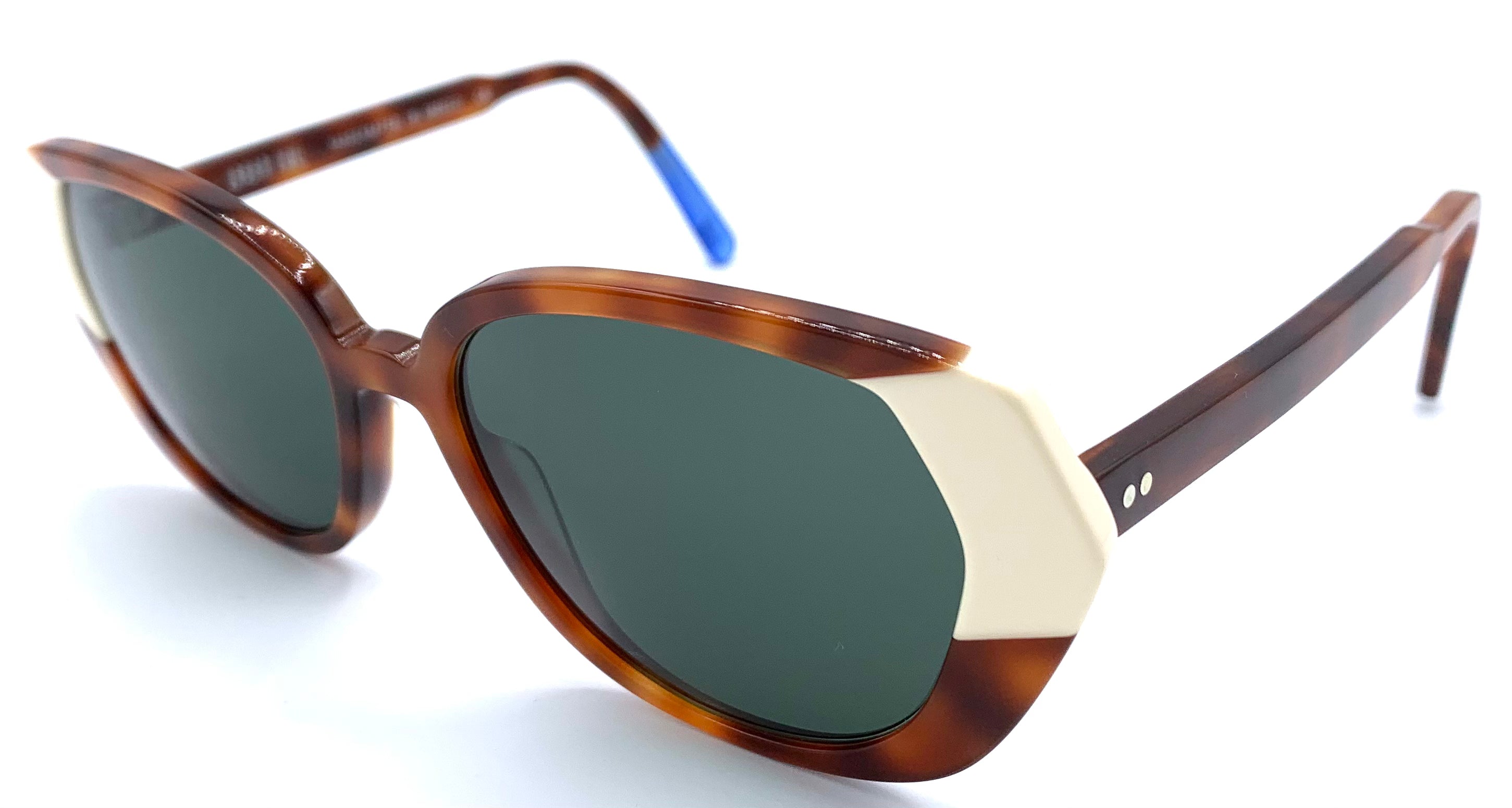 Occhiale da solei donna in lastra  bicolore avana e panna cerniera affogata design leggermente a gatto lenti infrangibili grey verdi protezione uv