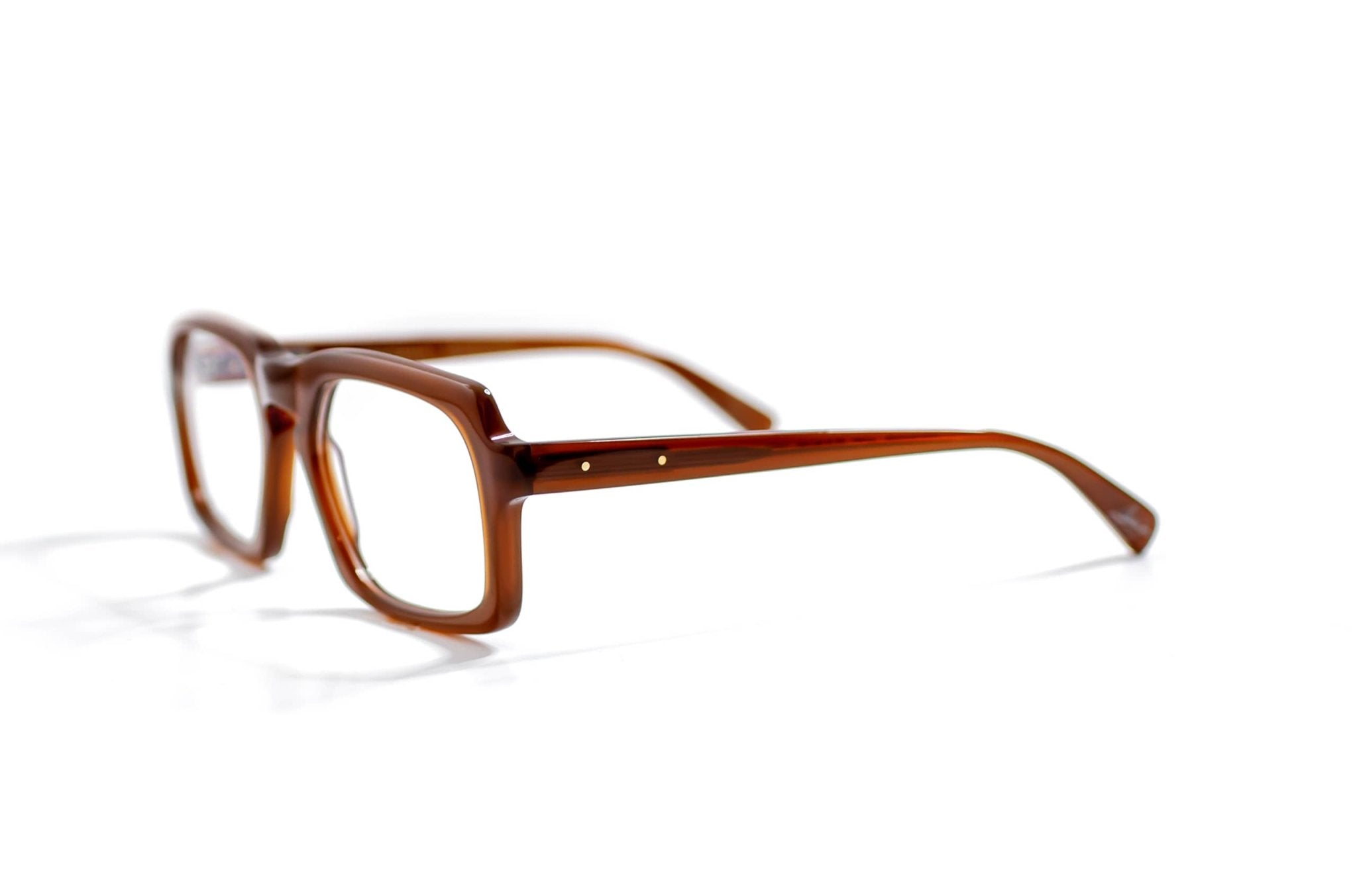 Men's thick brown plate glasses with sixties line, internal steel rod finishing