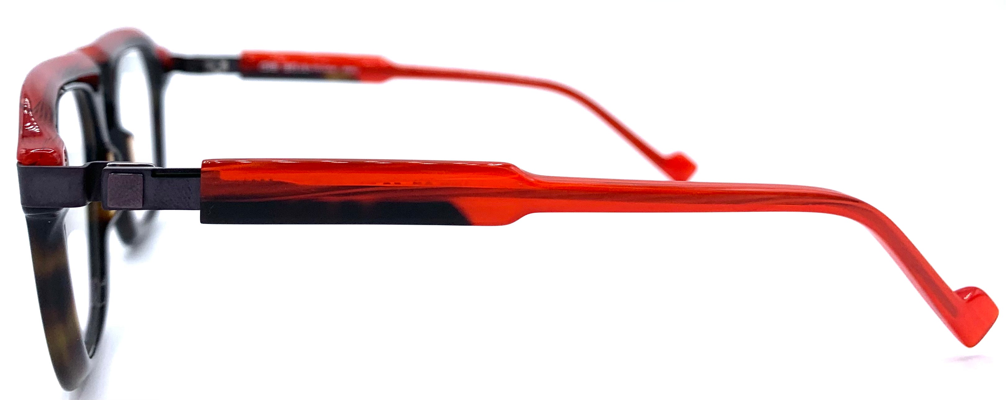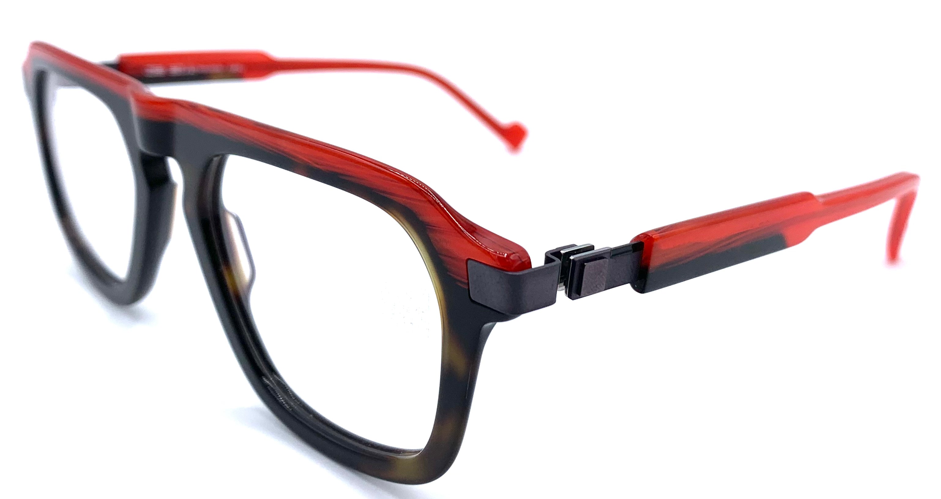 Occhiale da vista unisex in lastra verde avana e rossa aste flex a fibbia design rettangolare molto leggero