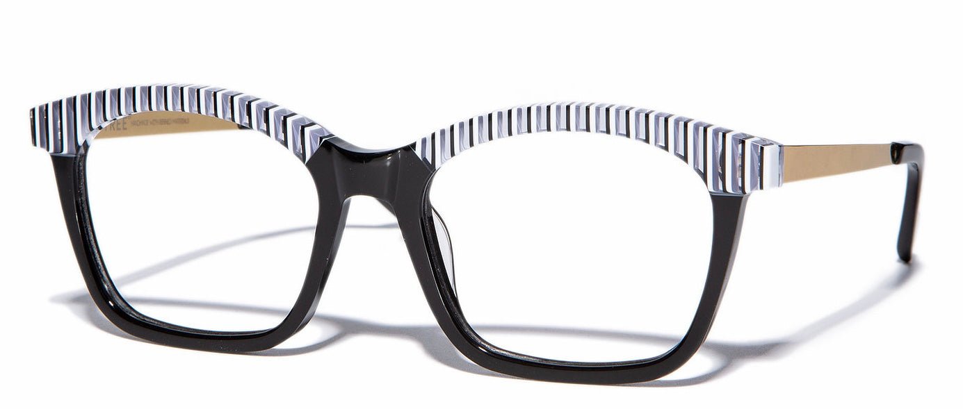 Women's eyeglasses in black plate with White milling on the eyelashes in gold steel rods