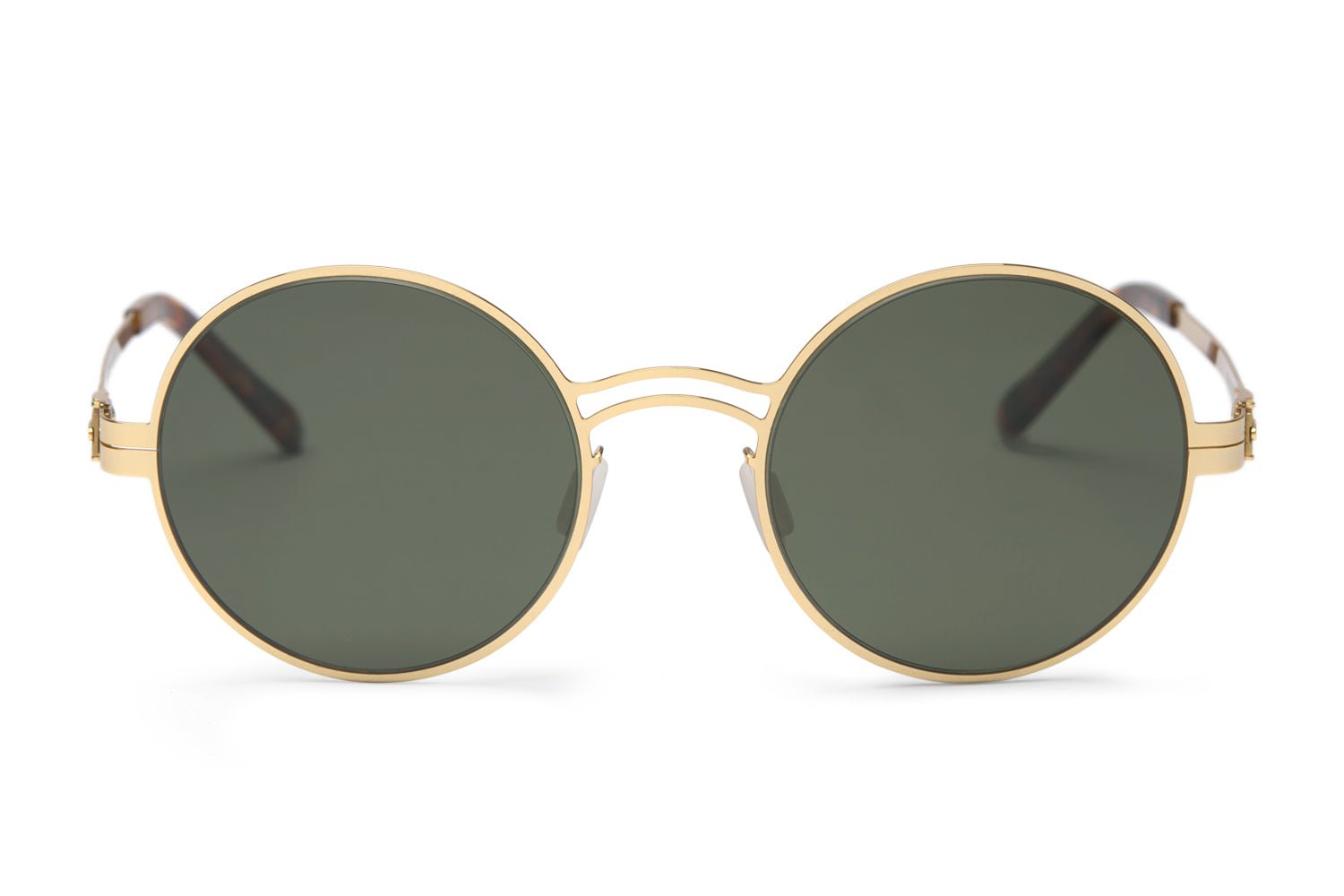 Unisex round shiny gold steel and carbon glasses with polarized anti-reflection green polycarbonate lenses uv protection