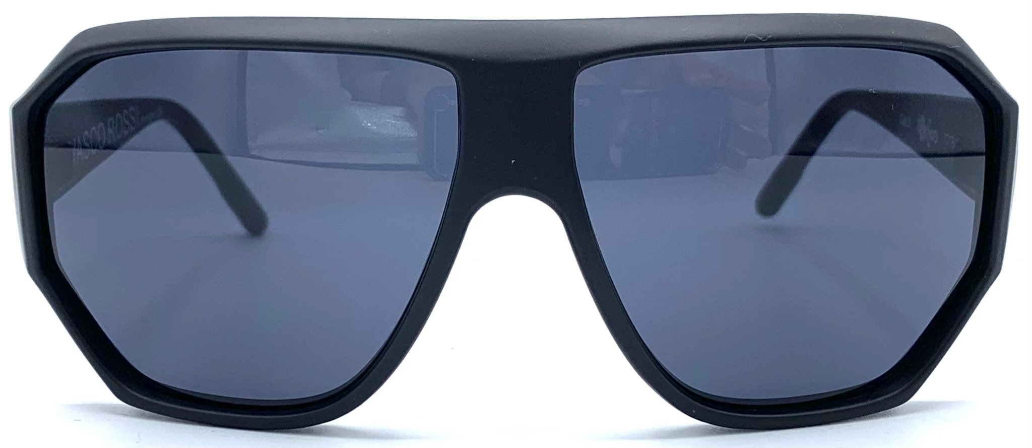 Black sunglasses with Gray UV protection lenses.