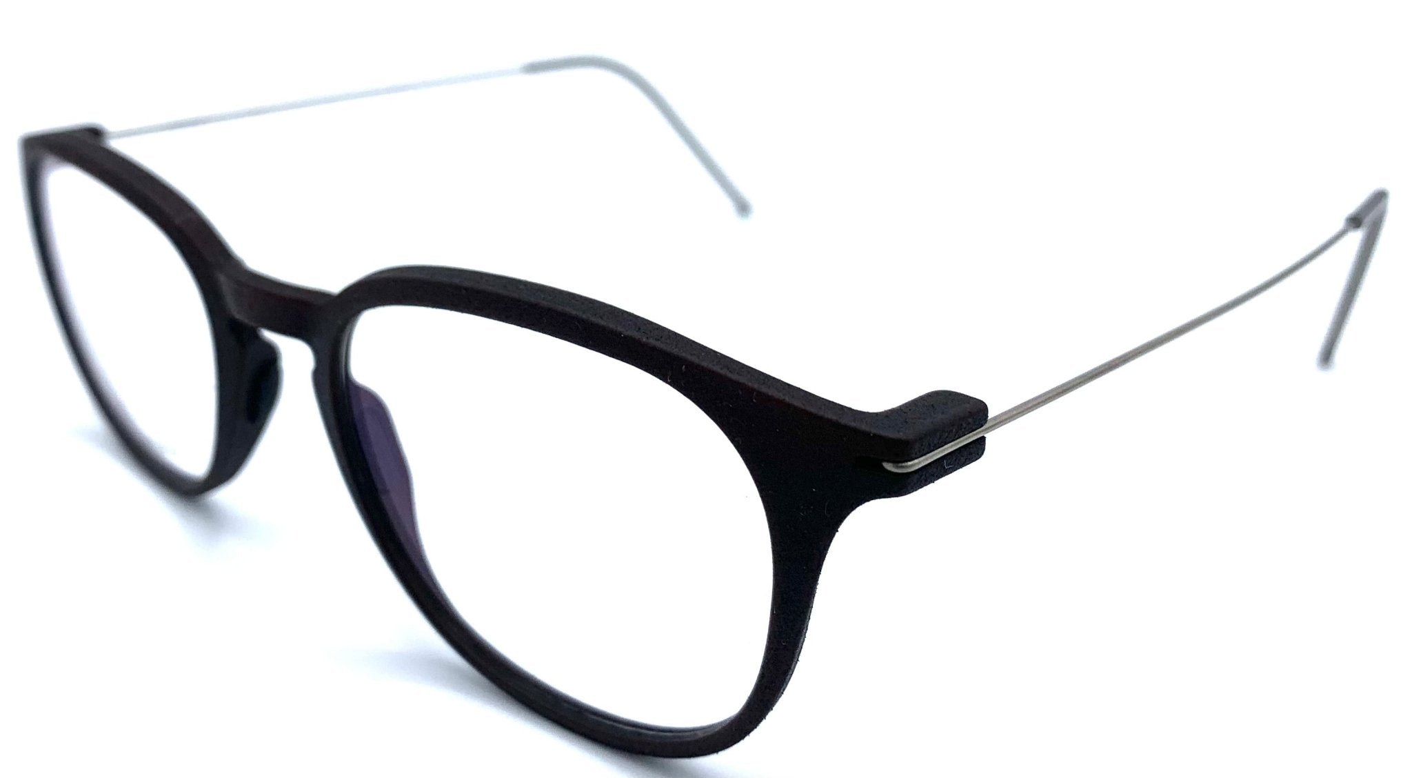 Occhiale prodotto in Germania, con peso di circa 4 grammi risulta leggerissimo sul viso. La montatura è ottenuta da nylon di origine vegetale e stampata in 3D. Le aste in titanio si inseriscono sull'occhiale tramite un sistema di attacco innovativo senza viti. I naselli sono in silicone e personalizzabili tra in tre misure, S M o L, così come la lunghezza delle aste.