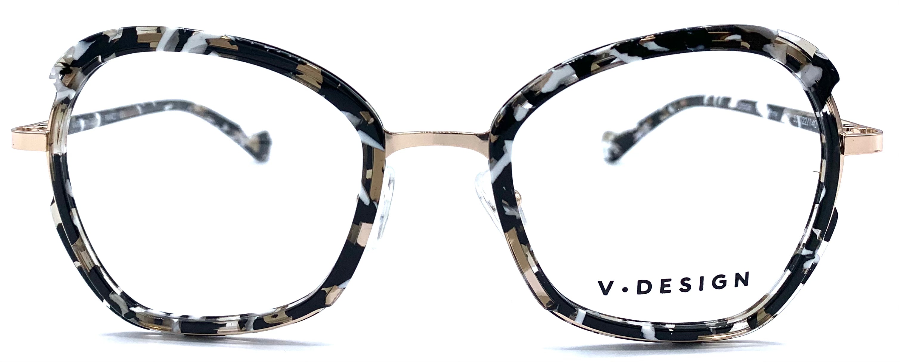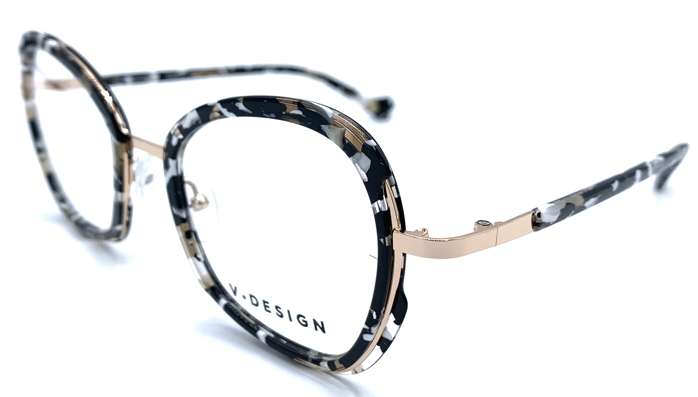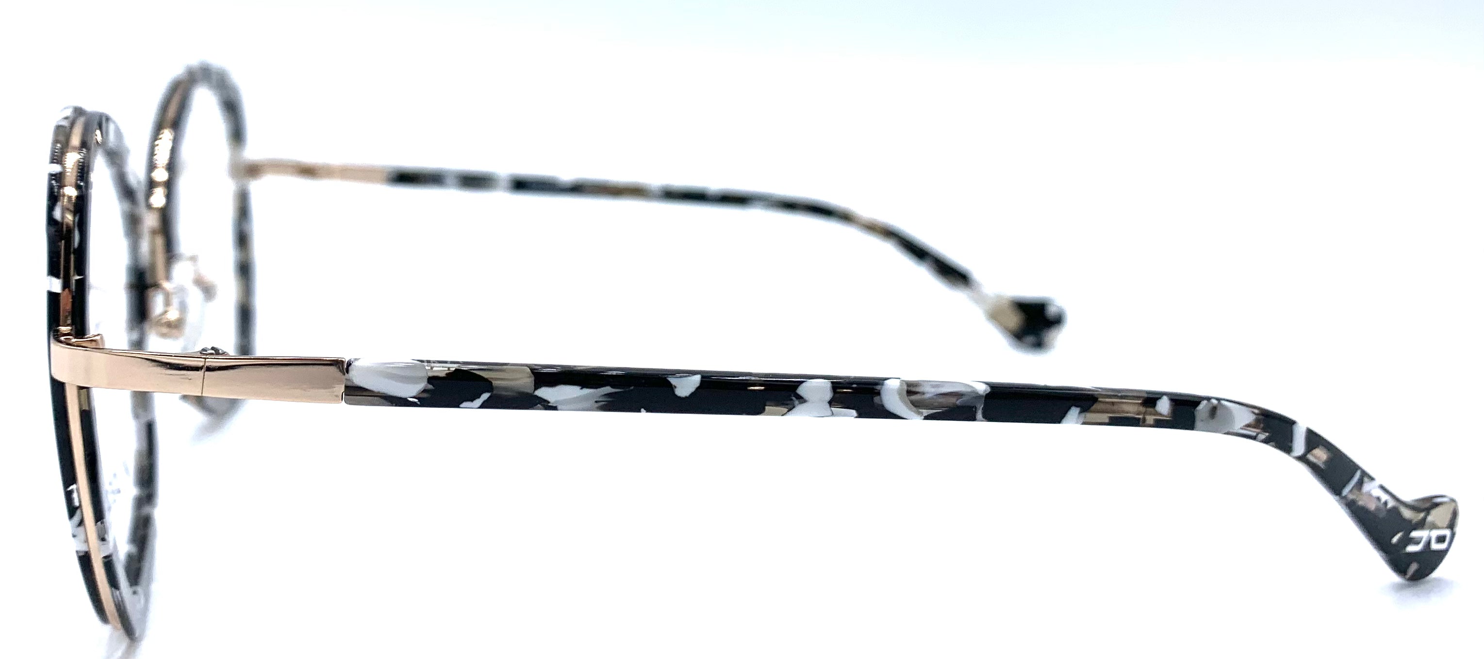 Occhiale da vista donna combinato lastra e metallo tonalità nero grigio bianco maculato design sagomato gatto