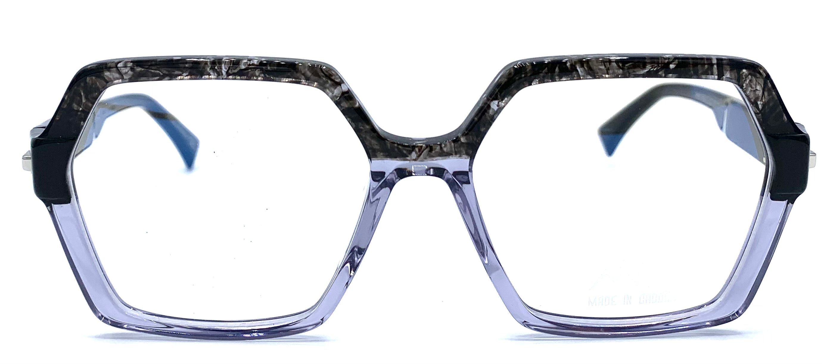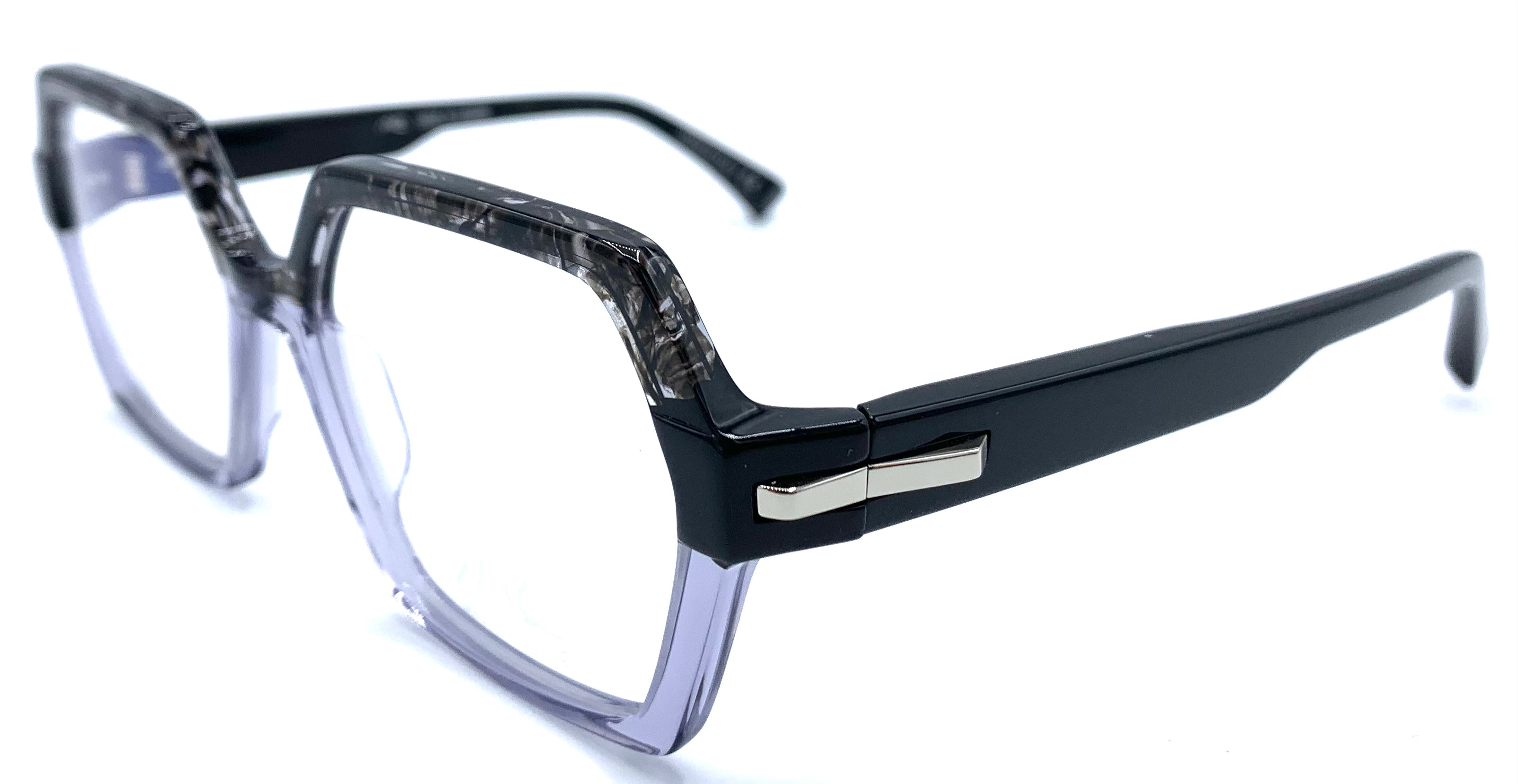 Occhiale da vista donna in lastra con tre tonalità dal grigio viola al nero design sagomato