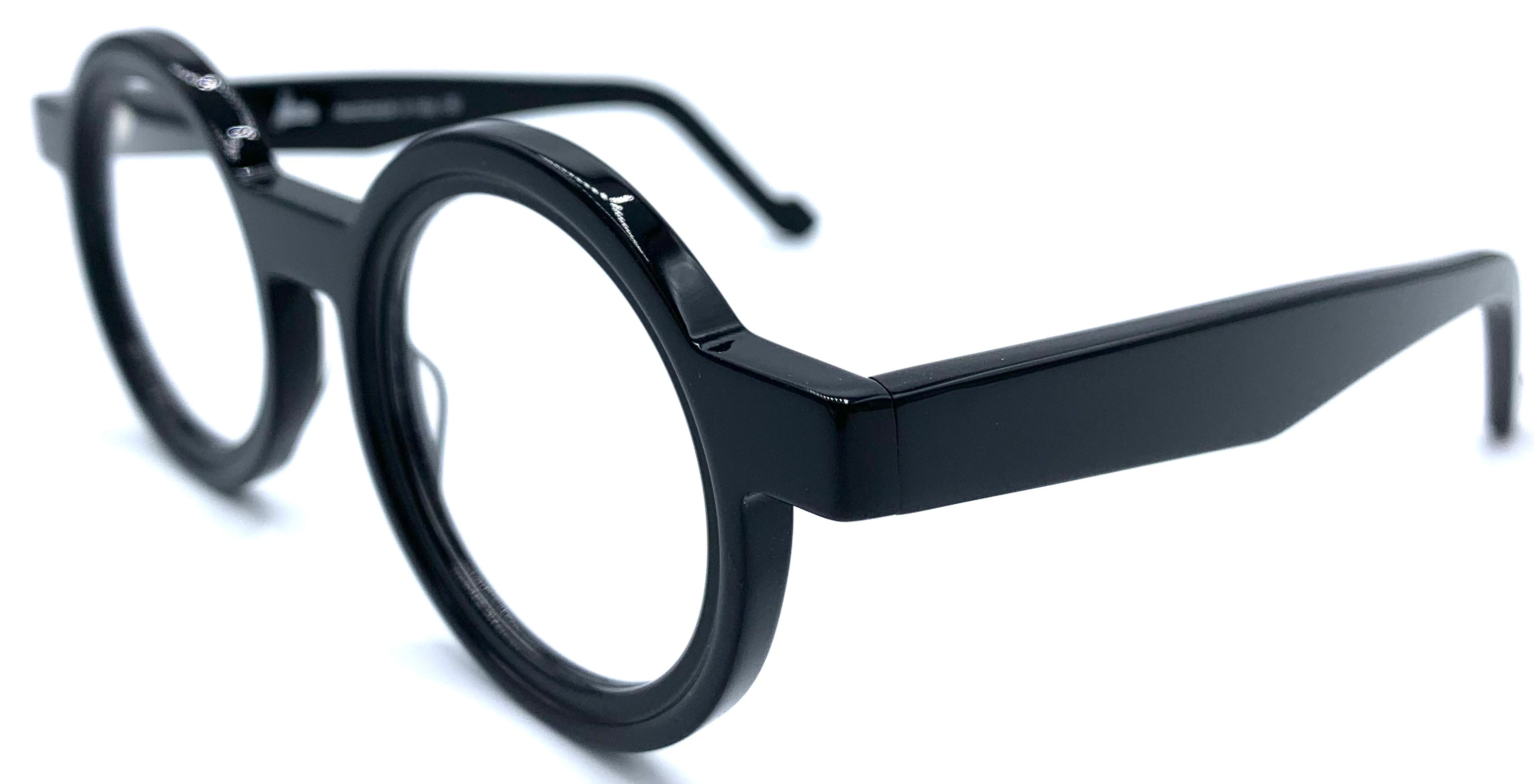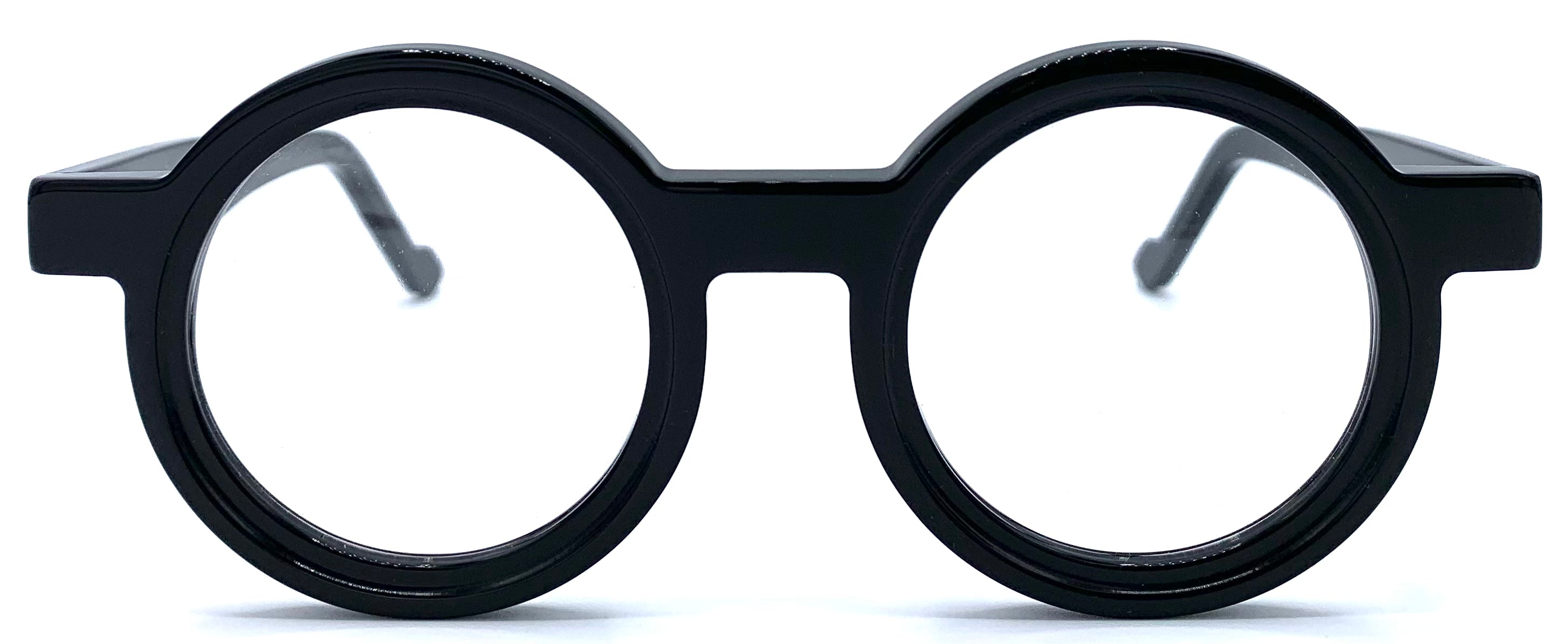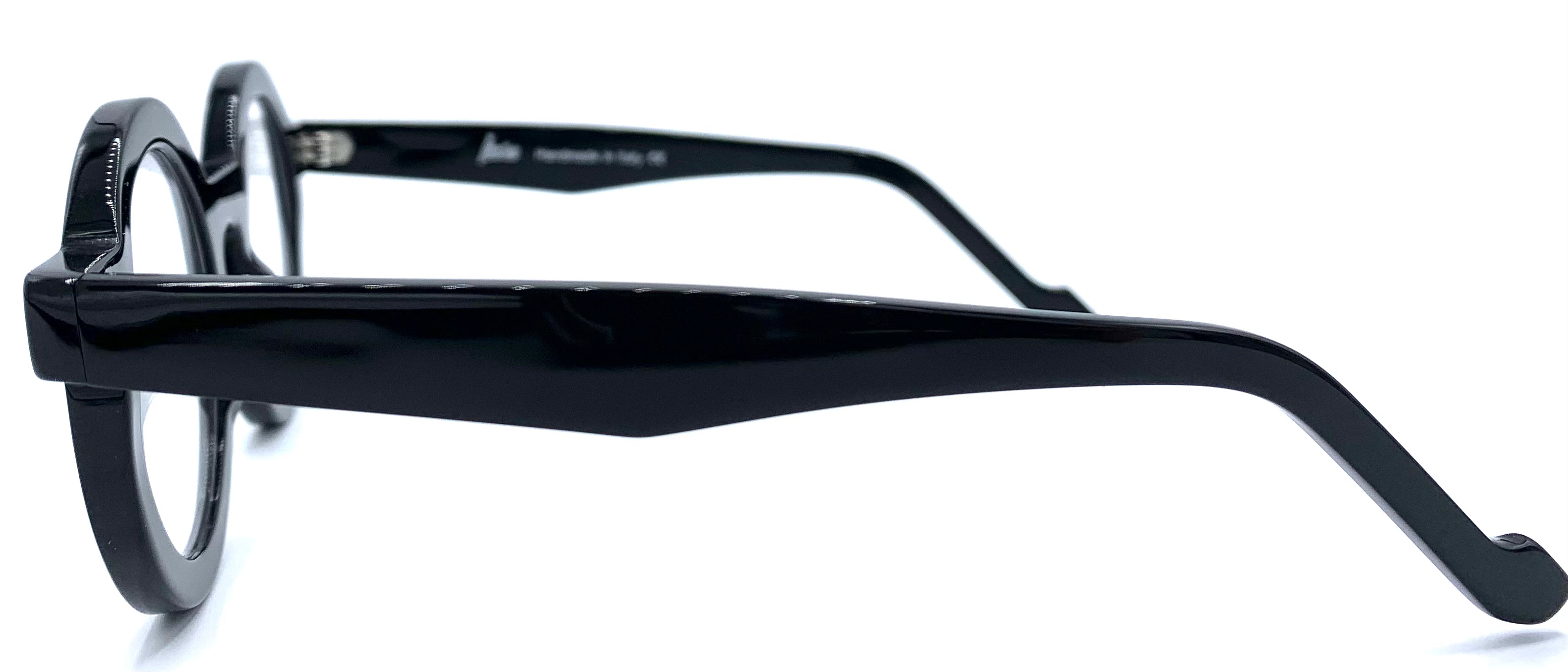 Occhiale da vista unisex in lastra nera lucida cerniera affogata design tondo storico