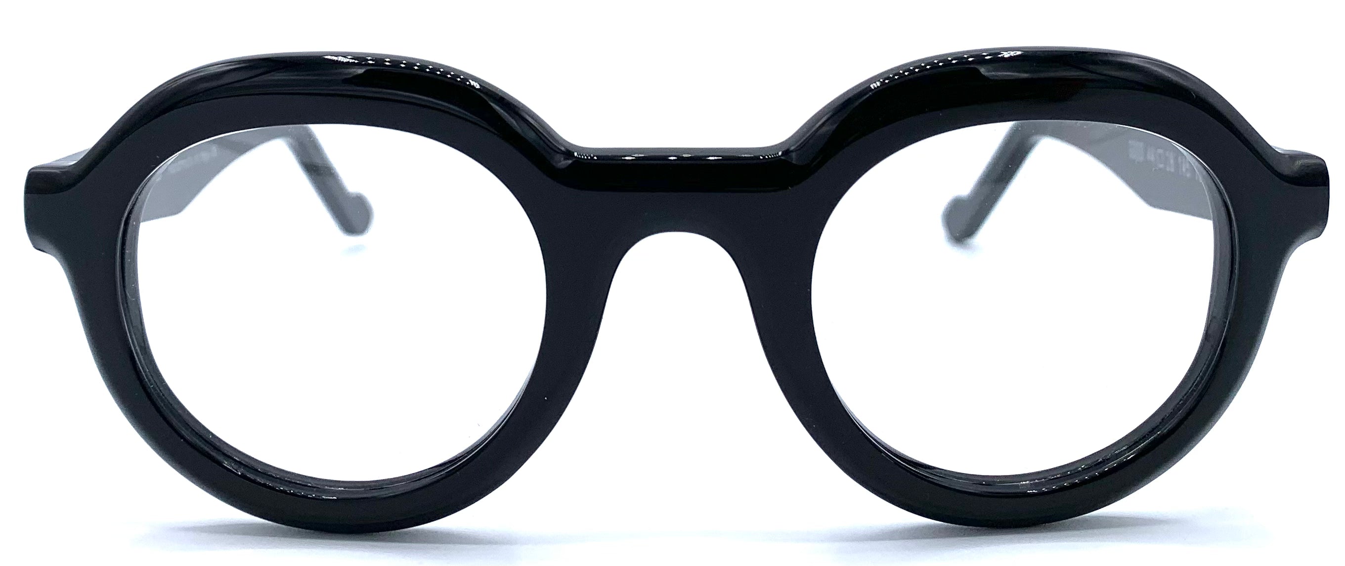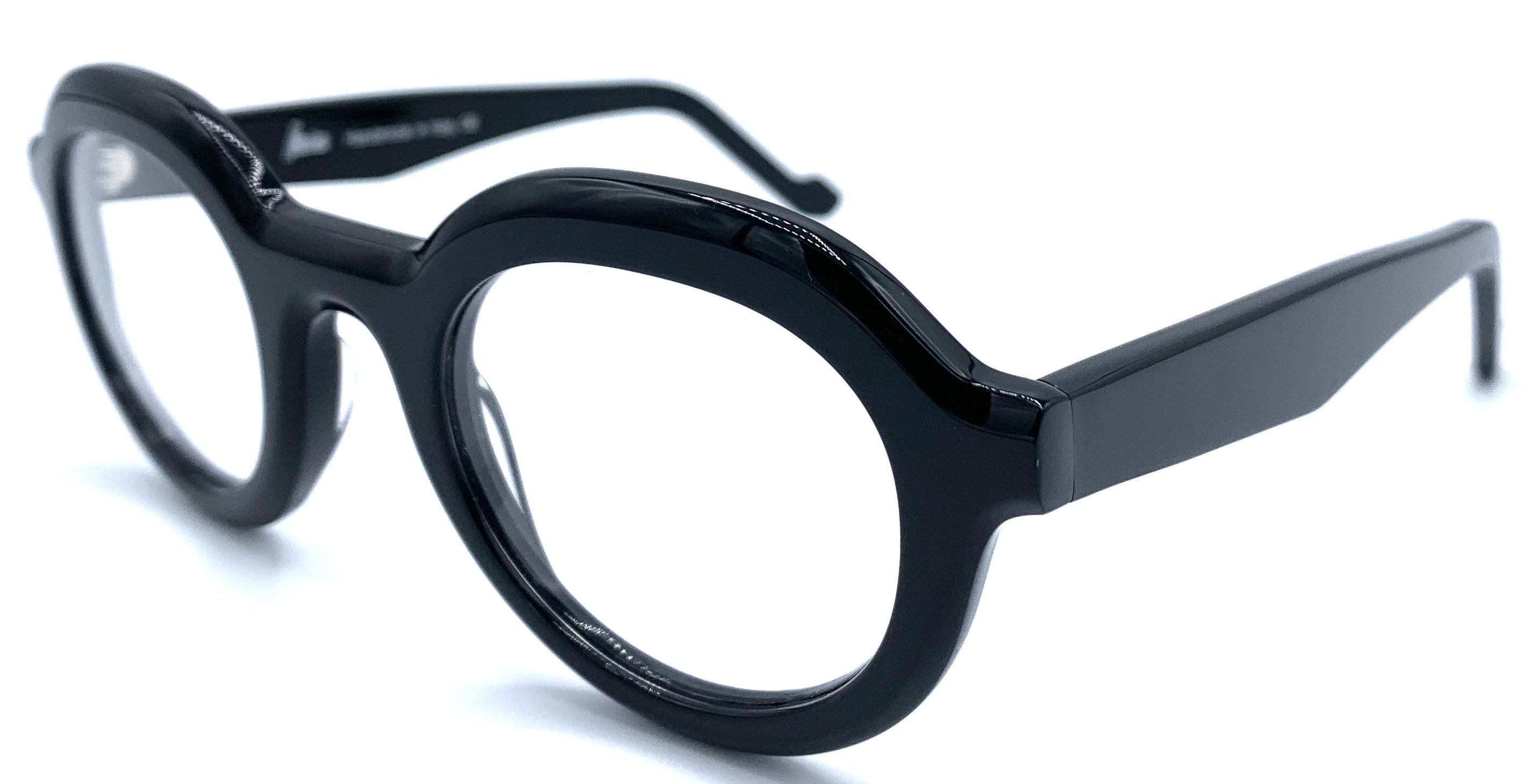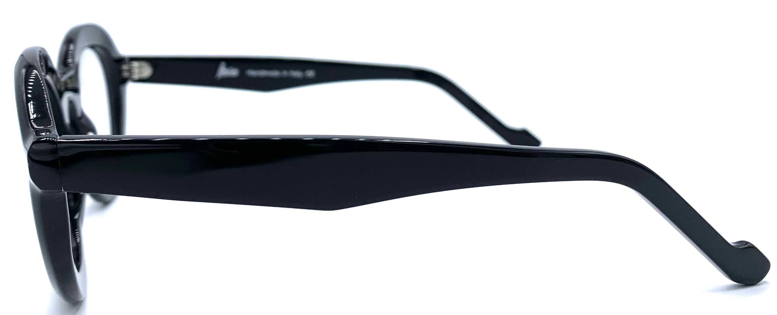 Occhiale da vista unisex in lastra nera lucida cerniera affogata design tondo