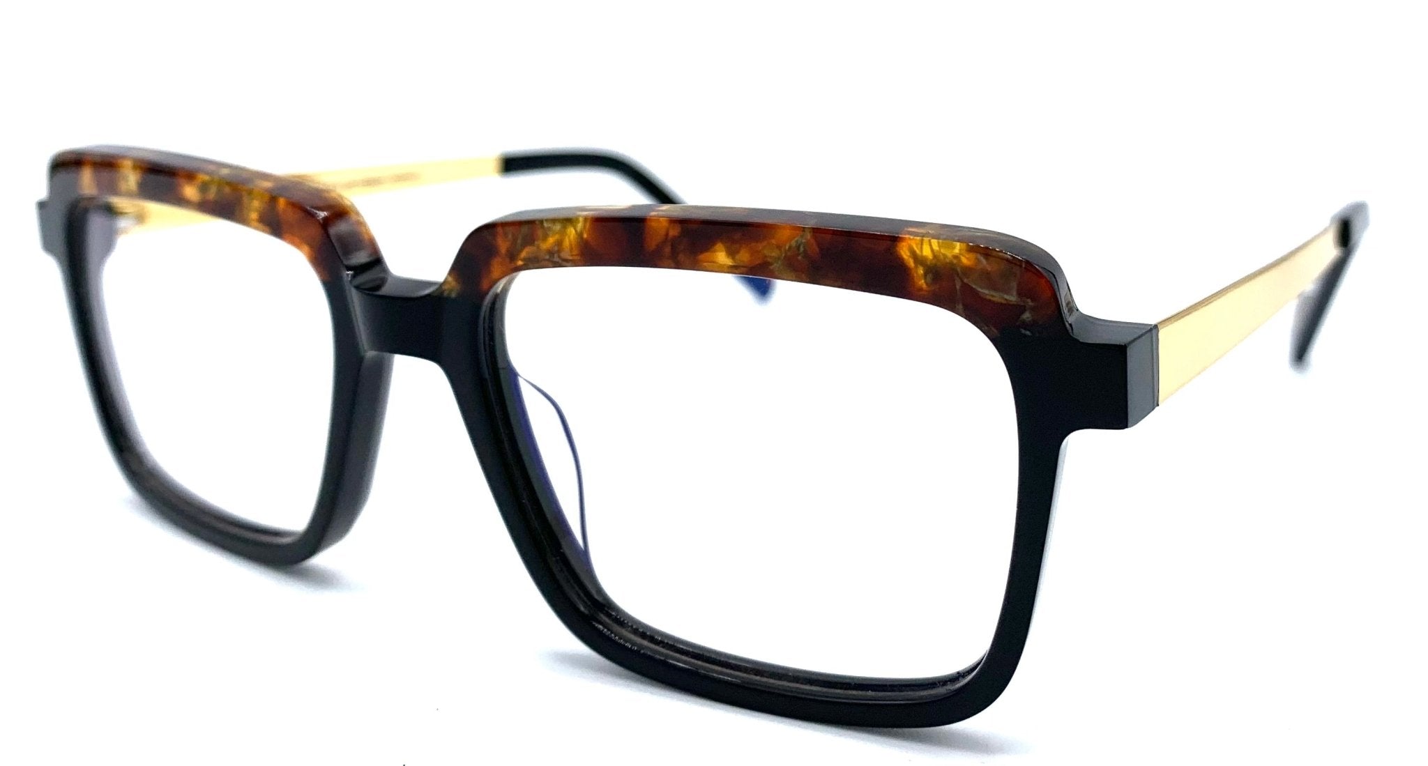 Women's eyeglasses in two-tone black plate and spotted brown ciliary gold steel rods