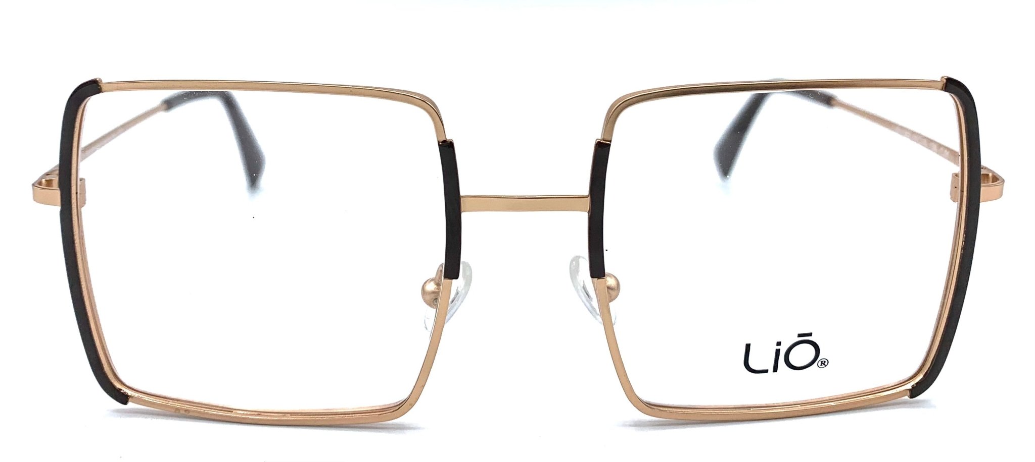 Women's eyeglasses in satin gold metal and with brown lacquered edges, square design