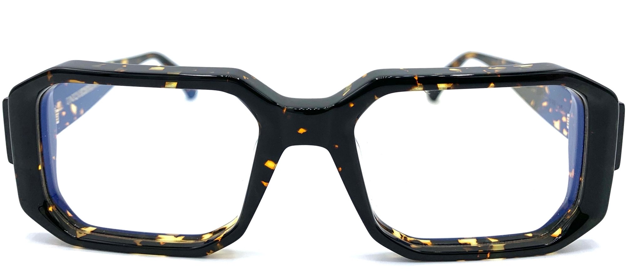 Men's eyeglasses in thick spotted plate with drowned hinges, wide rod Made in Italy