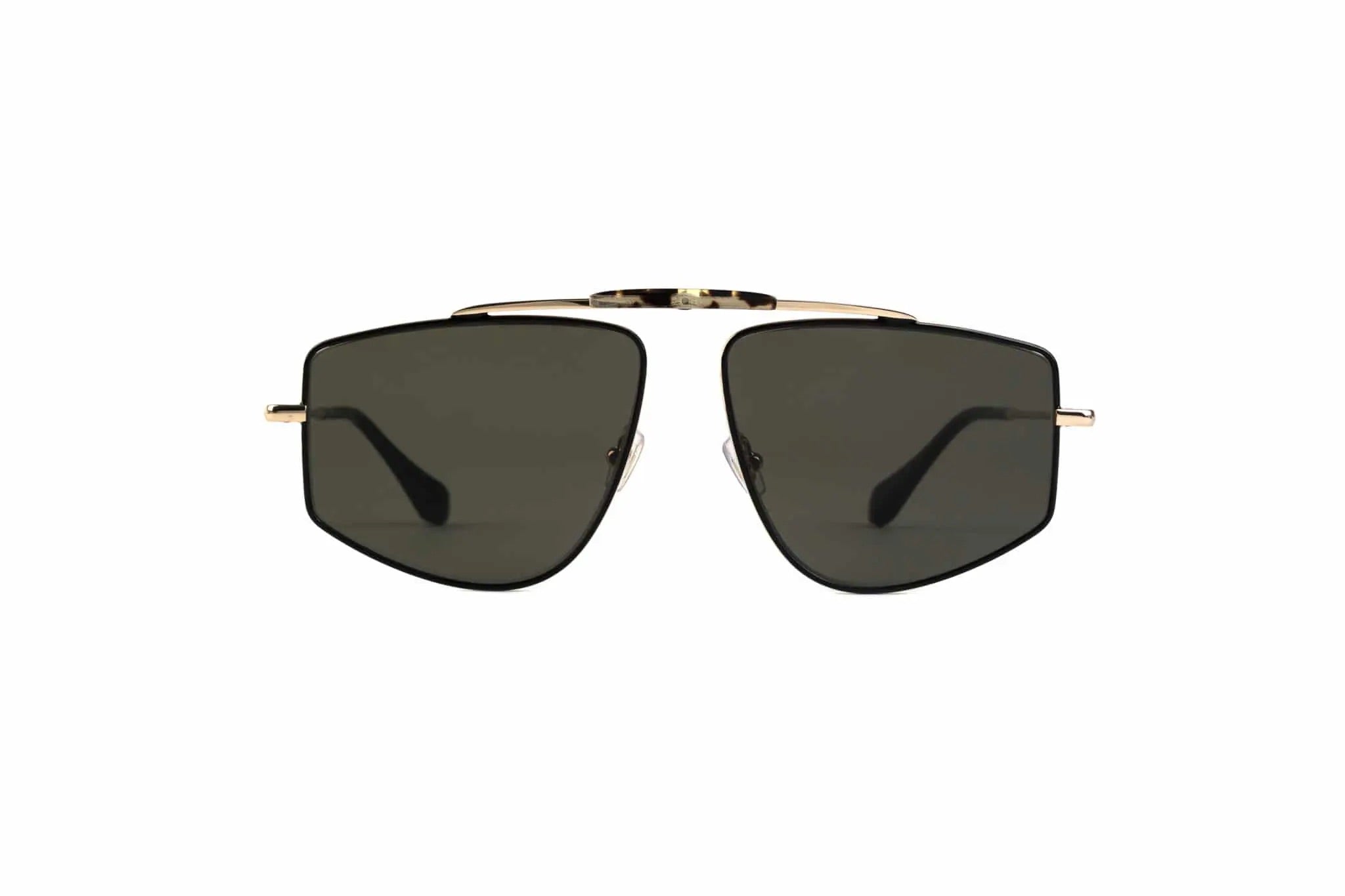 Unisex black gold metal sunglasses with unbreakable Gray UV protection lenses
