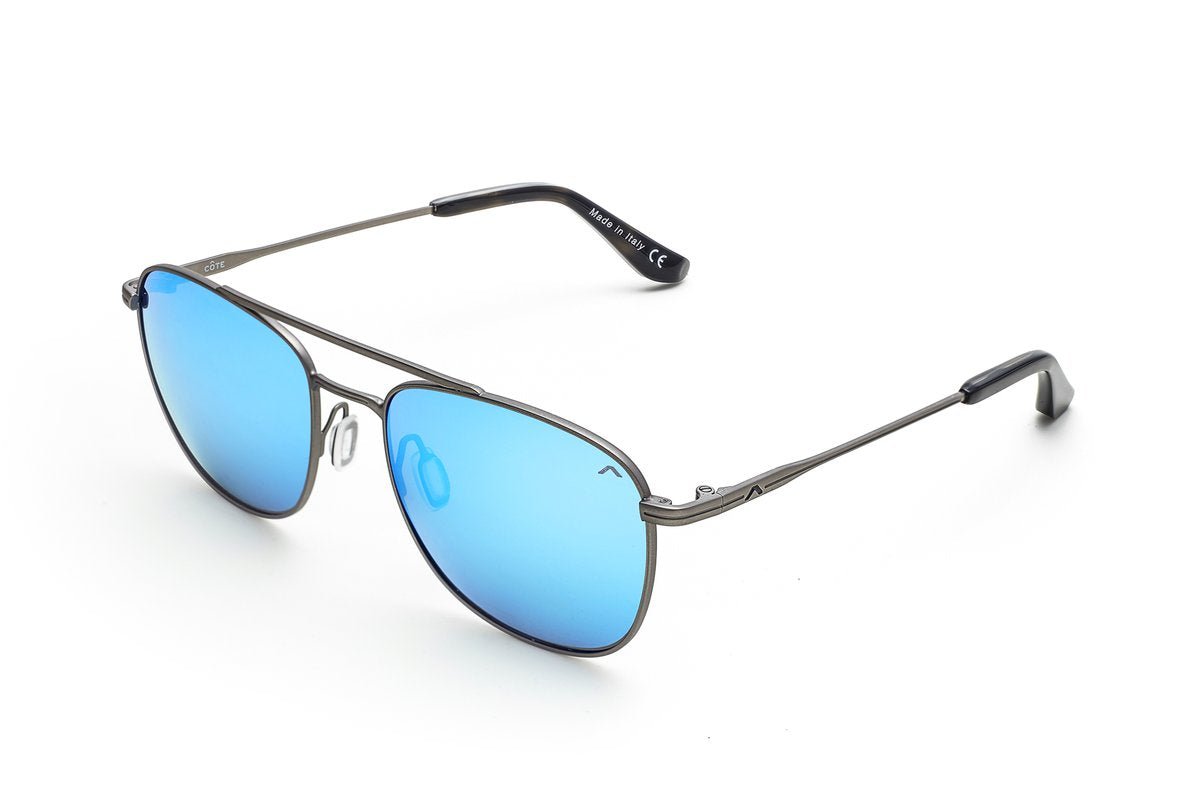 Satin gray glasses with anti-reflection polarized blue mirror lenses