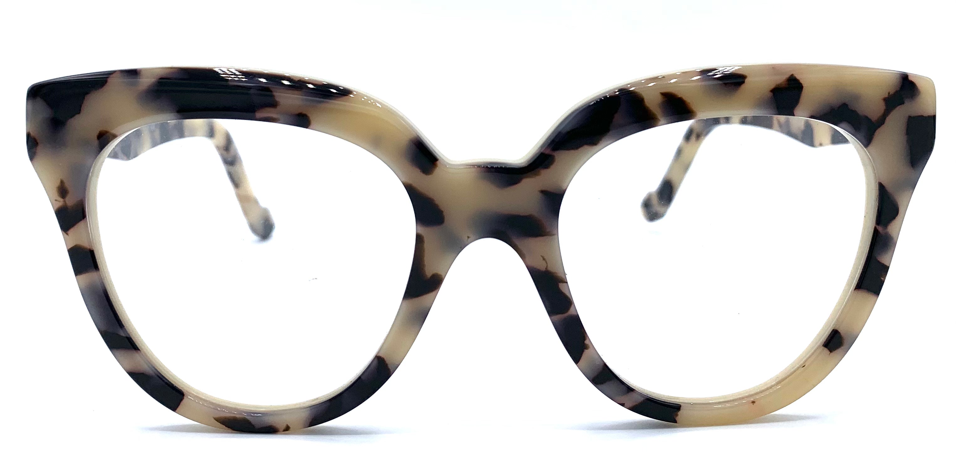 Occhiale da vista donna in lastra beige maculato lucida cerniera affogata design a gatto
