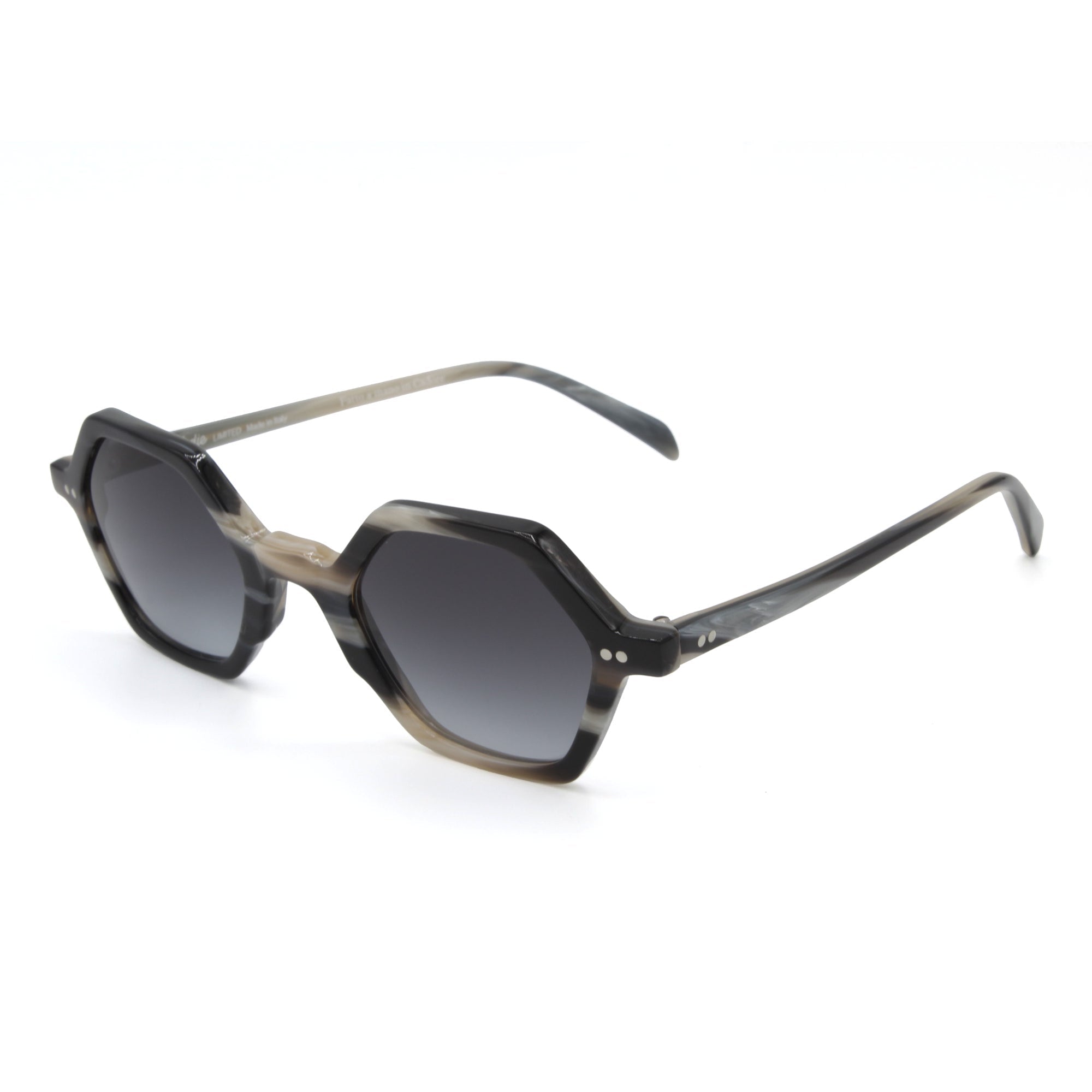 Material: cellulose acetate plate in 3 shaded colors on the front and temples