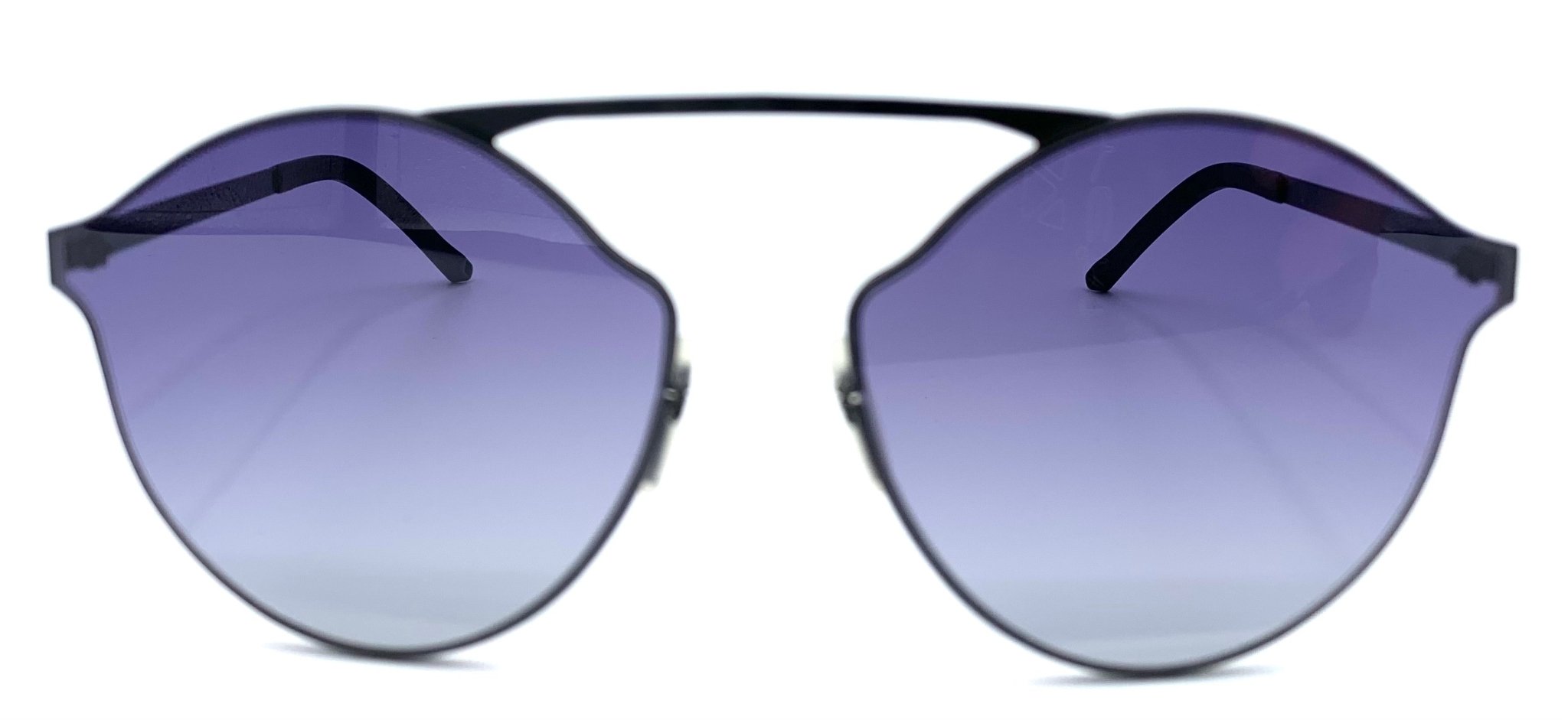 Unisex black metal sunglasses with gray gradient flat polycarbonate lenses and internal anti-reflection UV protection treatment
