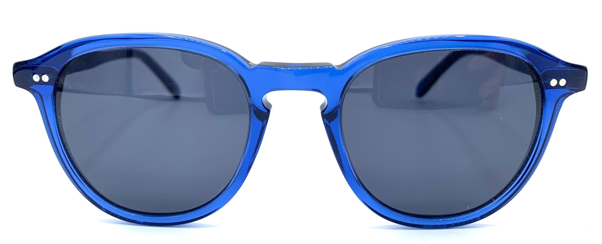 Unisex sunglasses in shiny blue plate with Gray polycarbonate lenses for protection