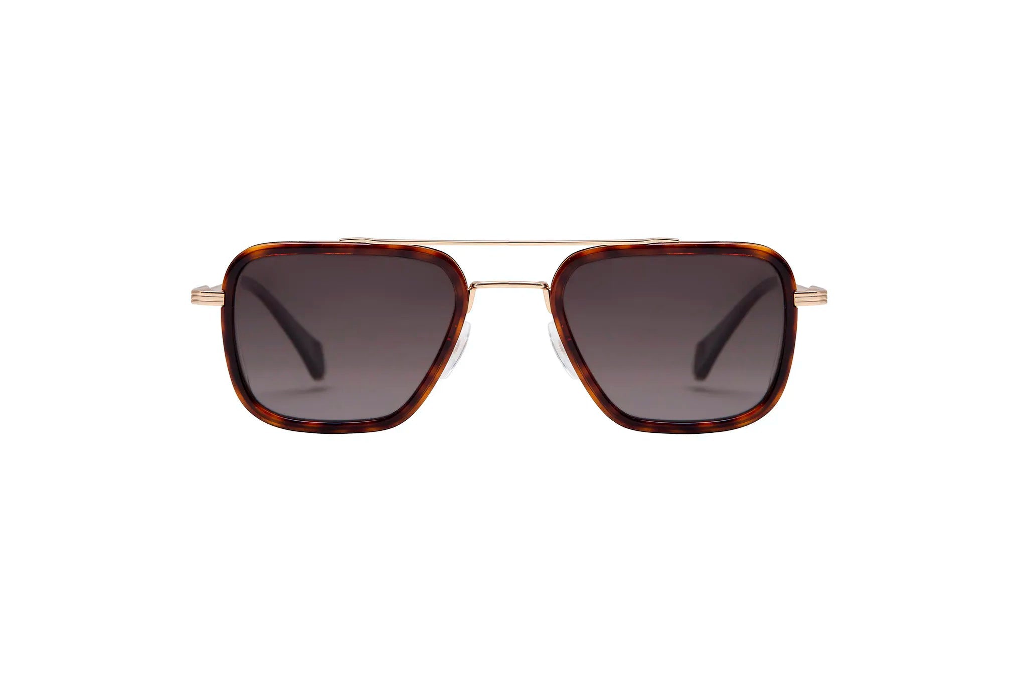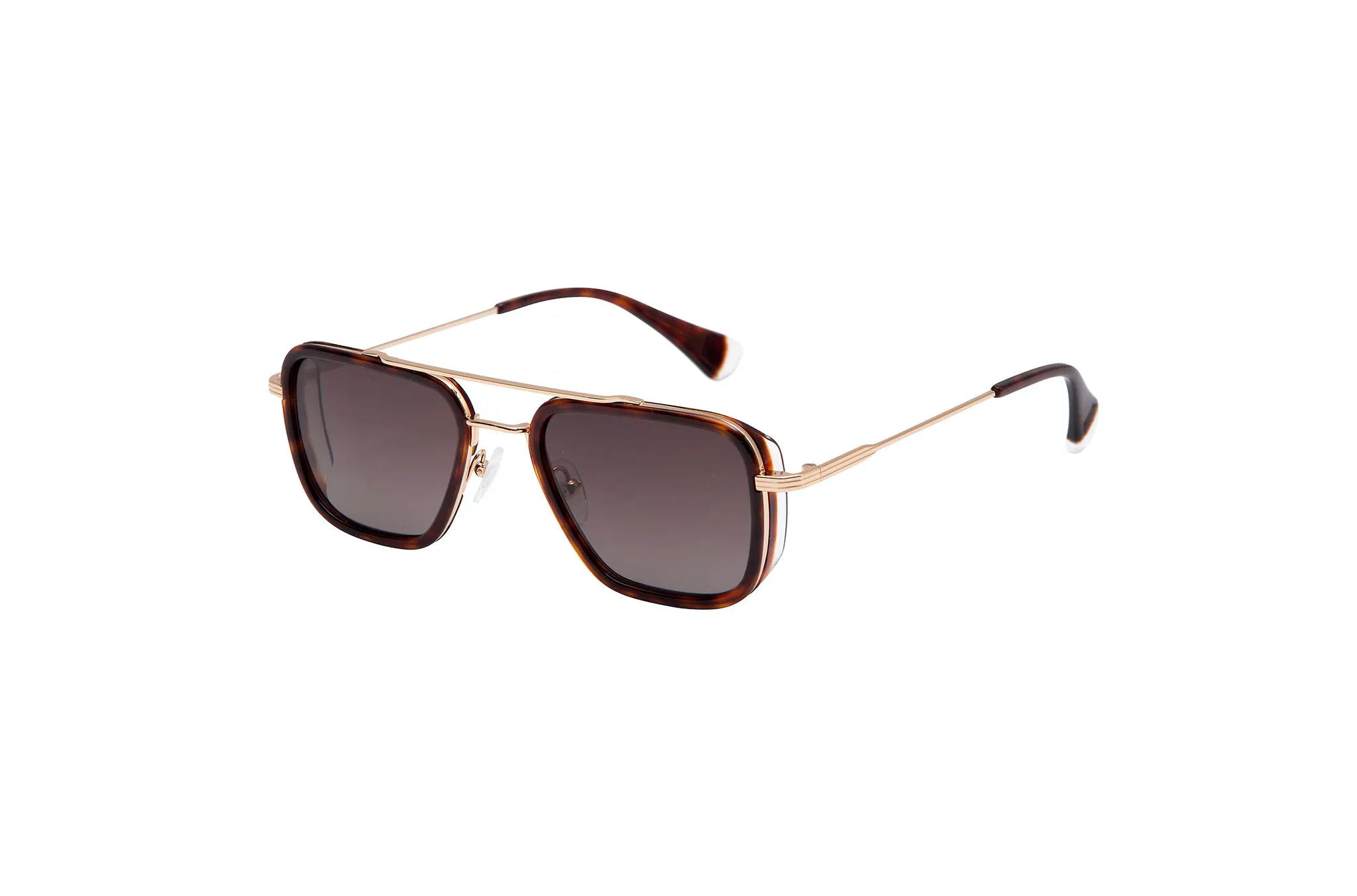 Occhiale da sole uomo combinato cello maculato e metallo con doppio ponte lenti polarizzate marroni protezione uv