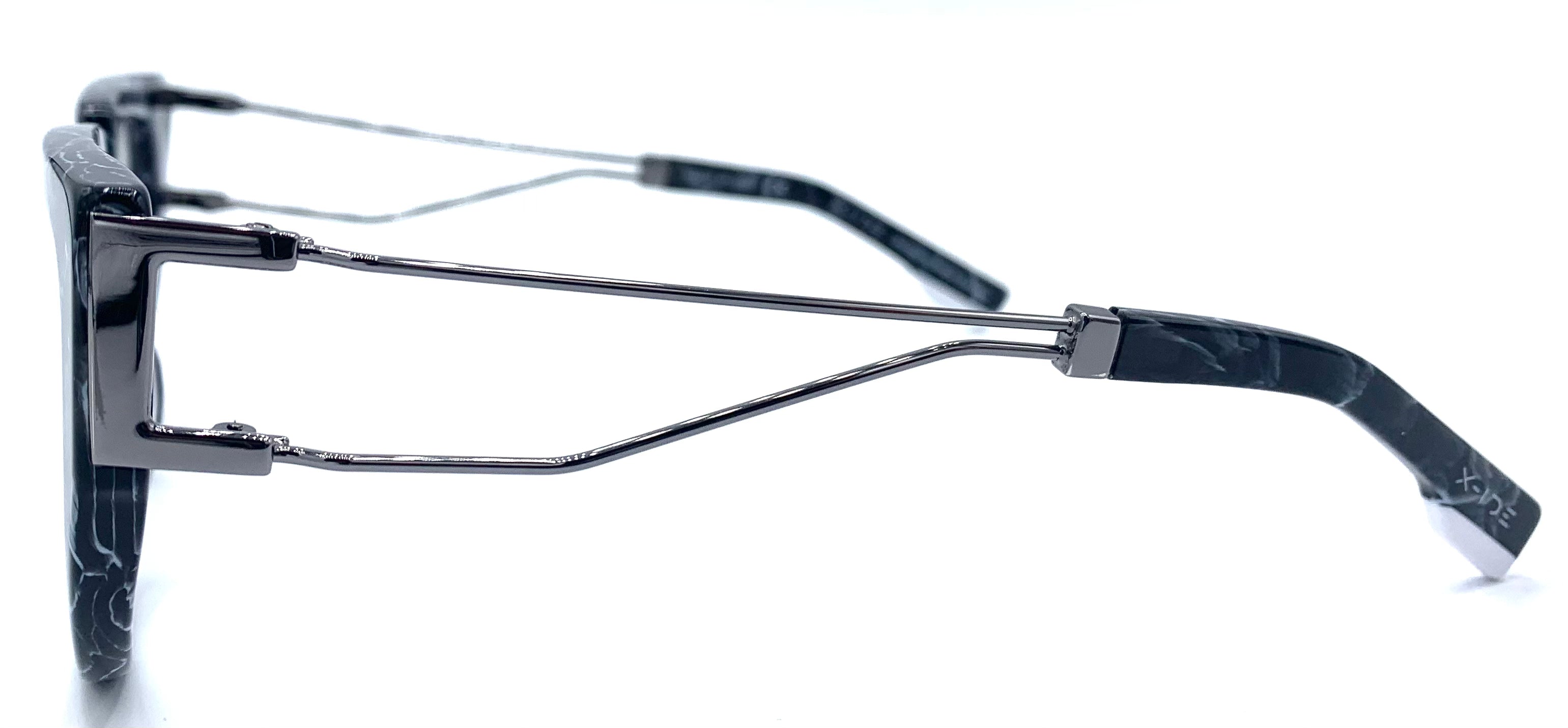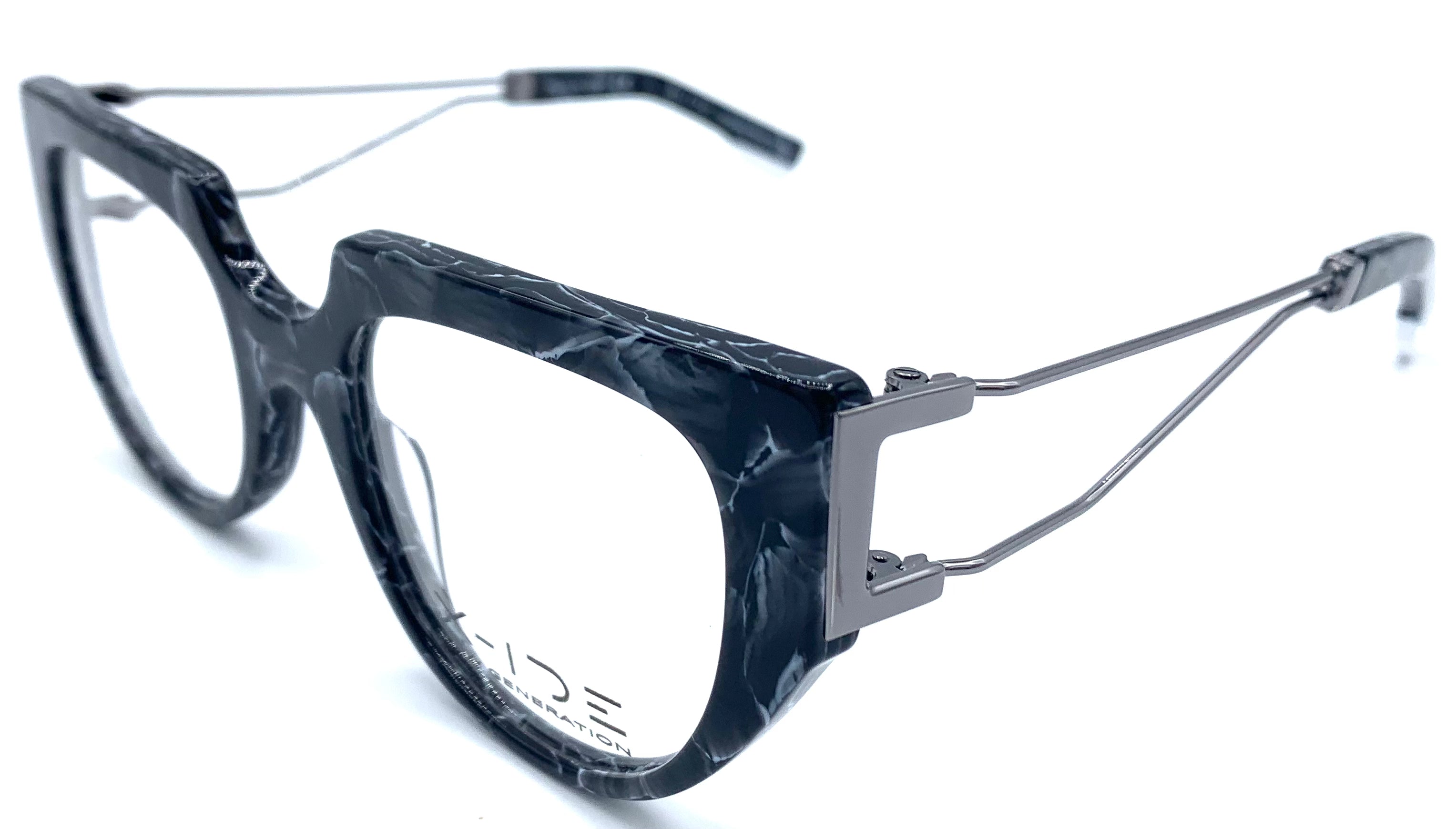 Occhiale da vista donna in lastra nero striato bianco aste in metallo doppio design alto sagomato