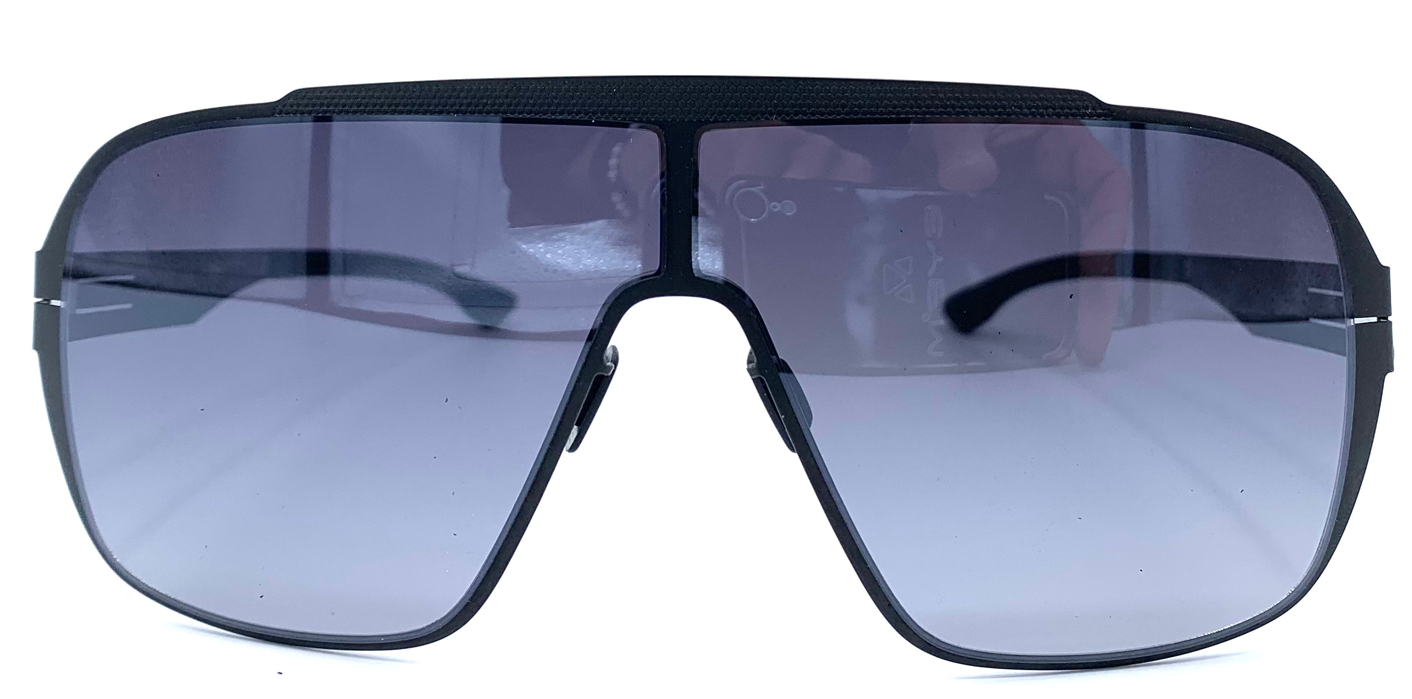 Occhiale da sole unisex leggermente bombato a mascherina  in acciaio nero cerniere con fibbie leggero e resistente lenti in policarbonato Grey protezione uv