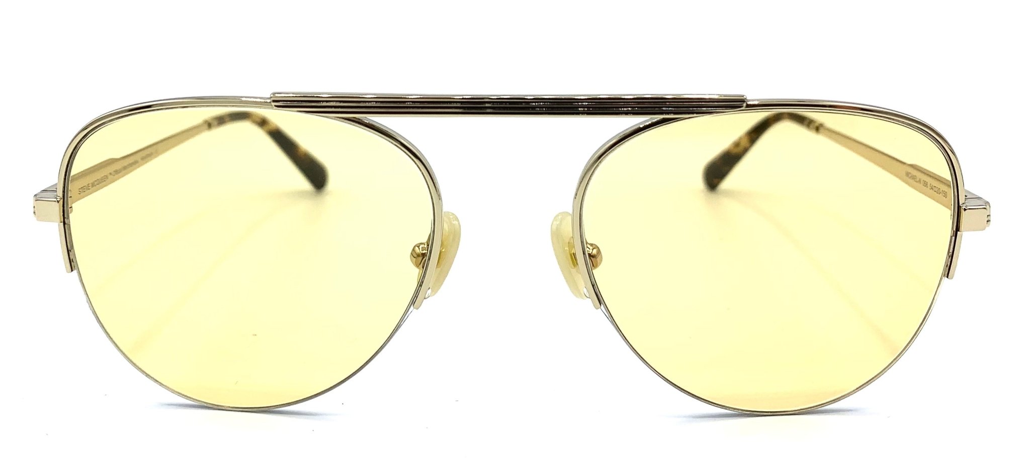 Occhiale in metallo oro lucido leggermente a goccia con lenti nylon e infrangibili gialle protezione uv