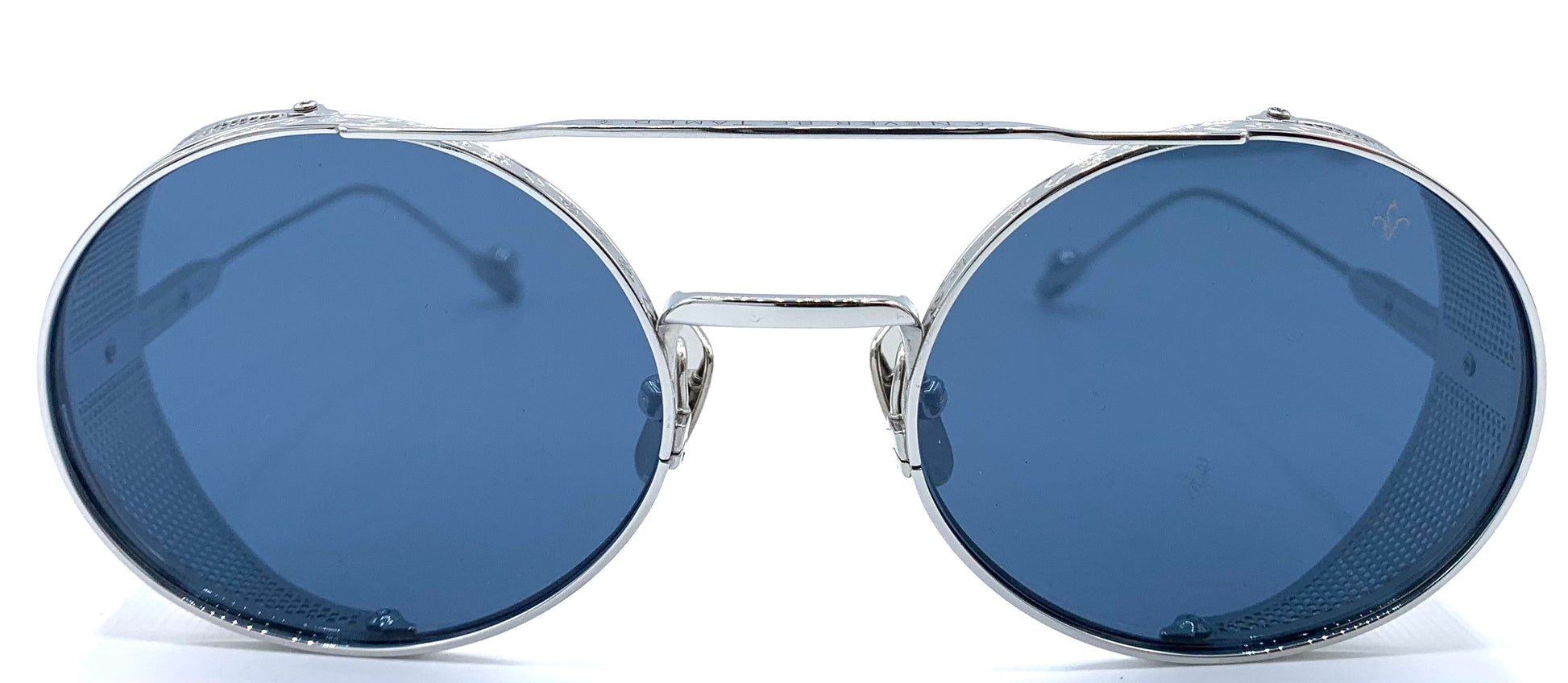 Occhiale da sole unisex in titanio Giapponese argento lenti infrangibili Grey protezione uv design ovale con la particolarità dei ripari laterali che si aprono in libertà dalle aste