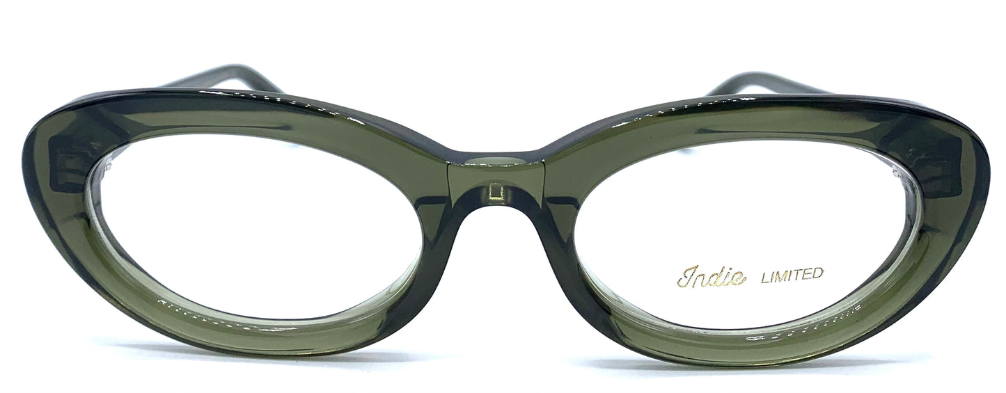 Occhiale da vista donna in lastra verde trasparente cerniere affogate design a gatto piccolo