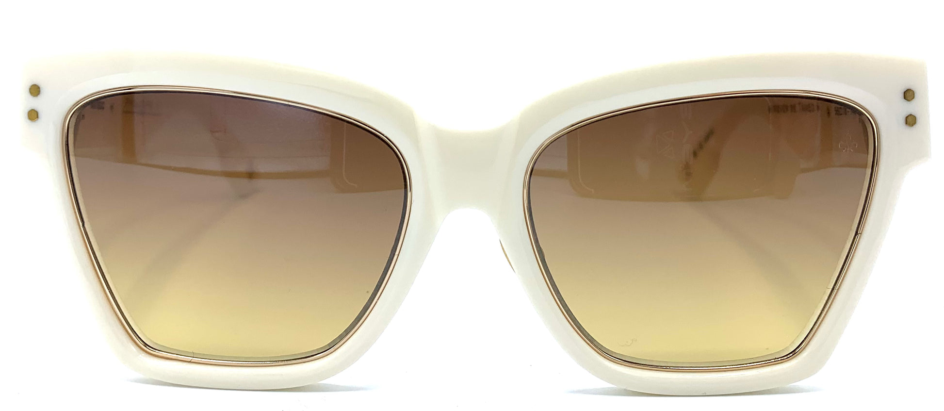 Occhiale da sole donna in lastra bianca e titanio Giapponese lenti Orange gradient protezione uv design leggermente a gatto